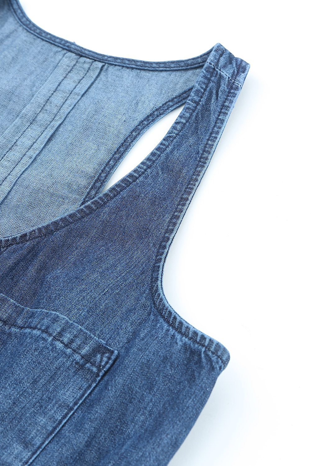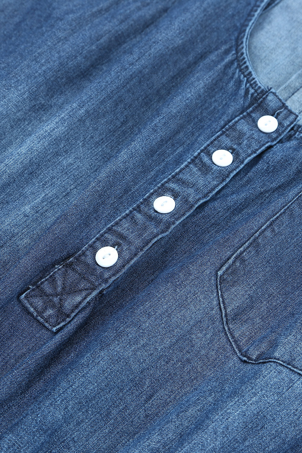 - It includes a v neck, functional buttons, and an elastic waist with side pockets