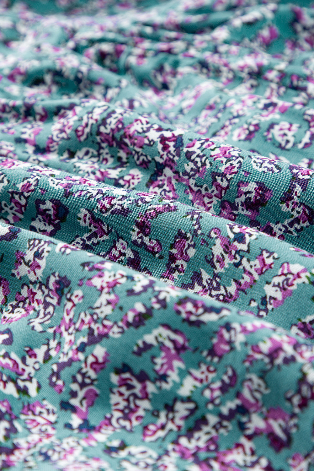 Blue Printed V Neck Shirred Short Puff Sleeve Maxi Dress