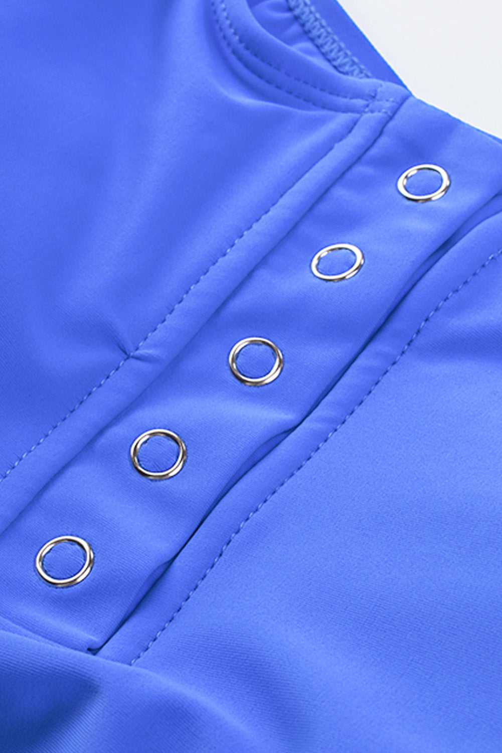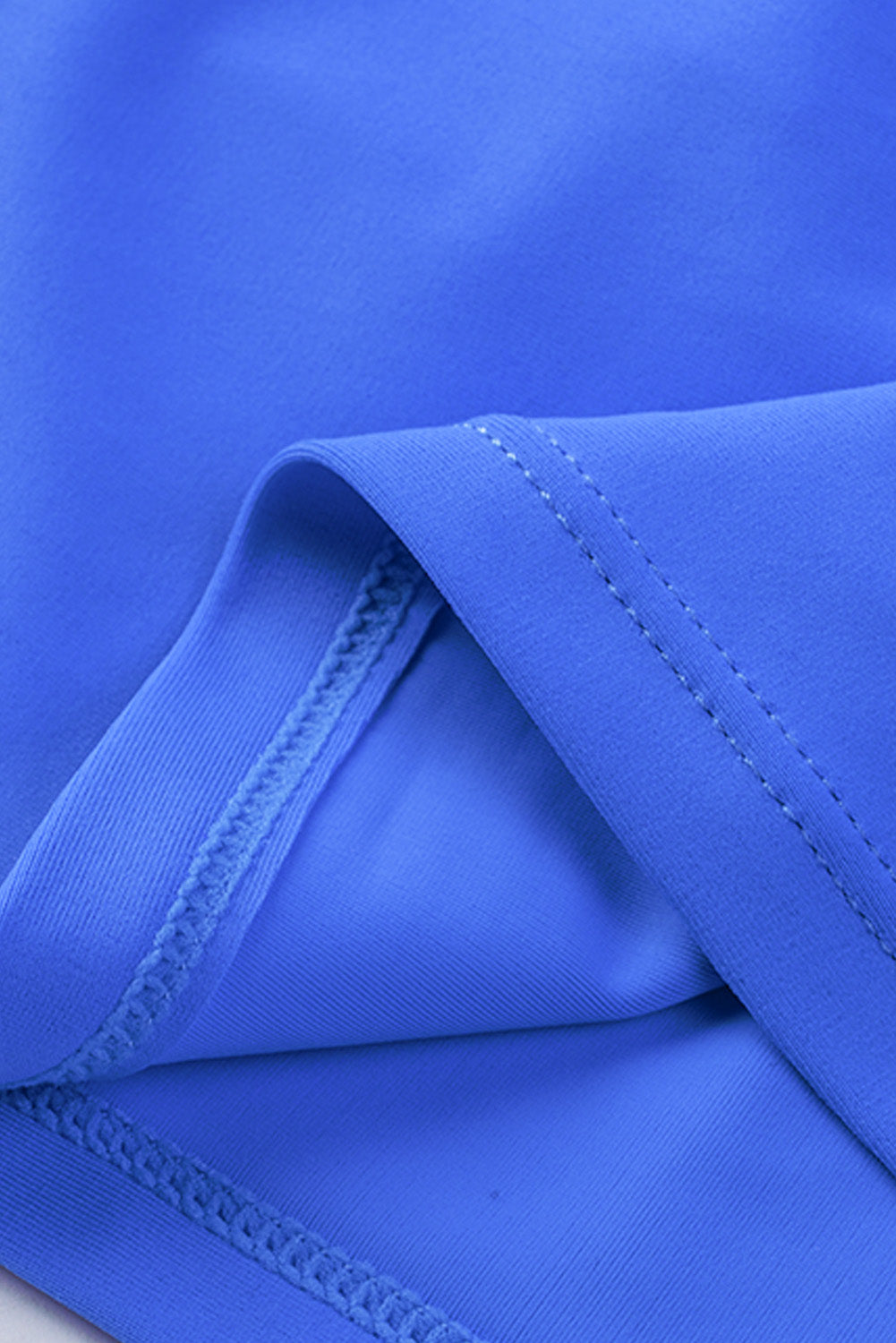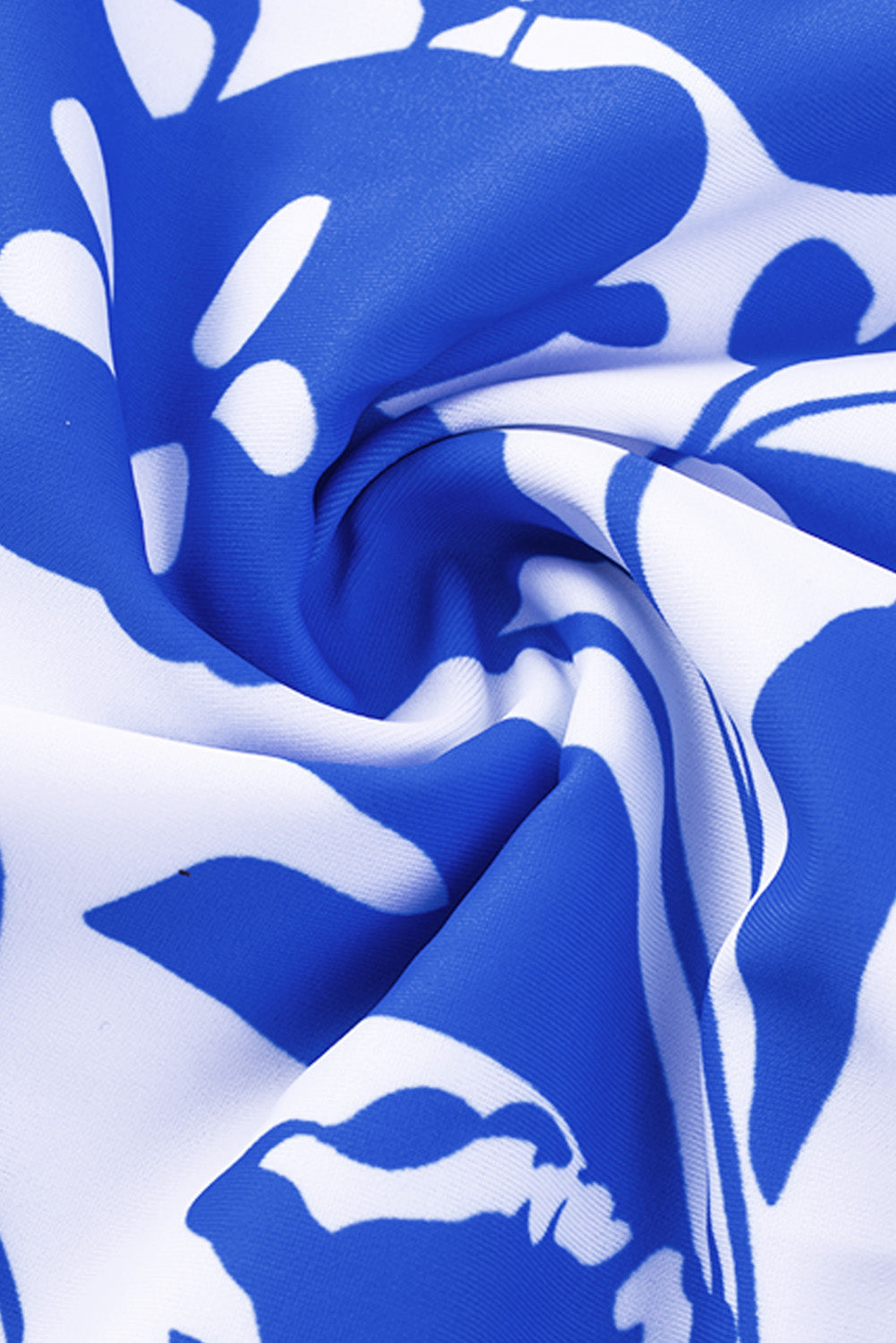Blue Square Neck Sleeveless Fashion Print Tankini Set
