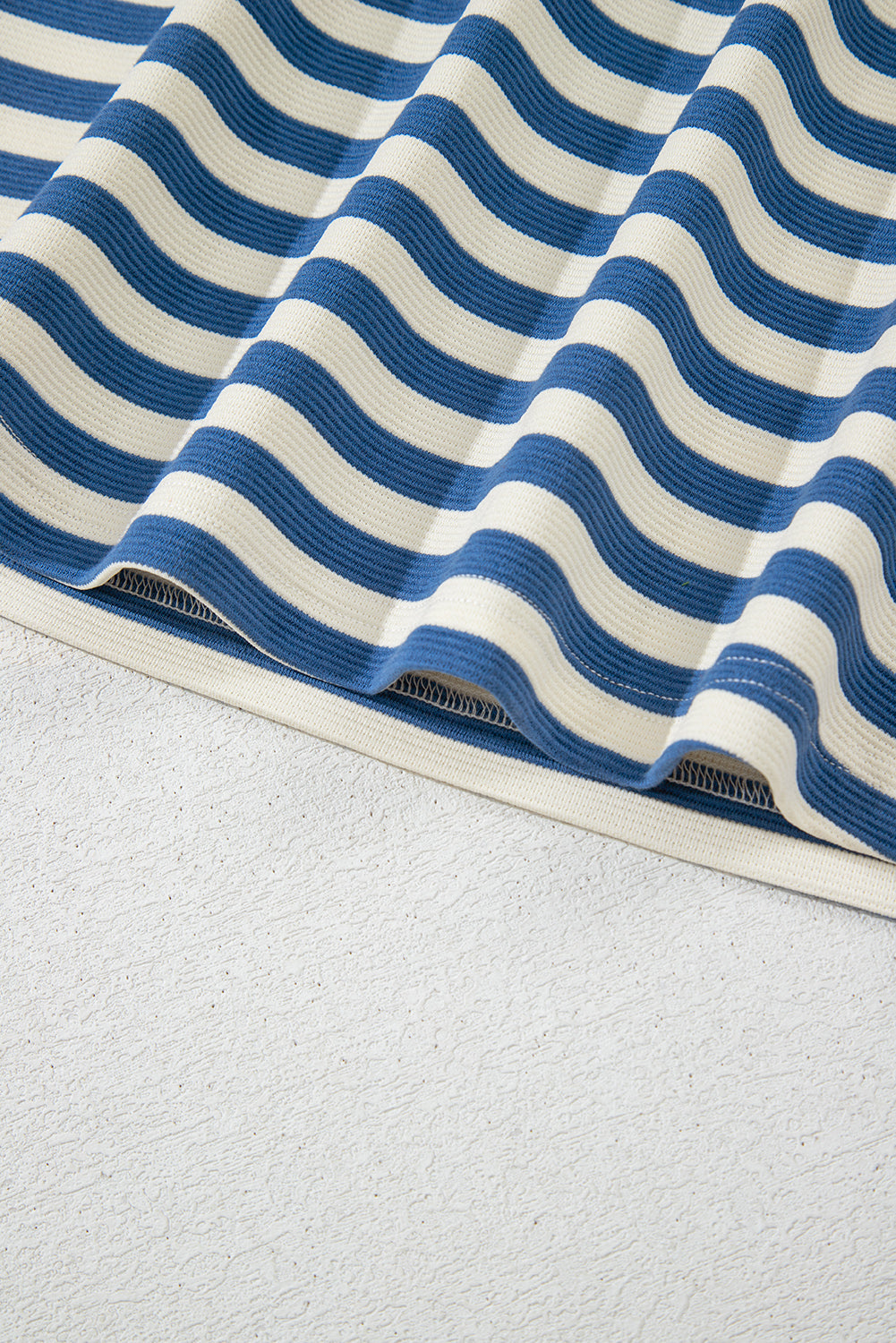Blue Stripe America Cursive Graphic Puff Sleeve T-shirt