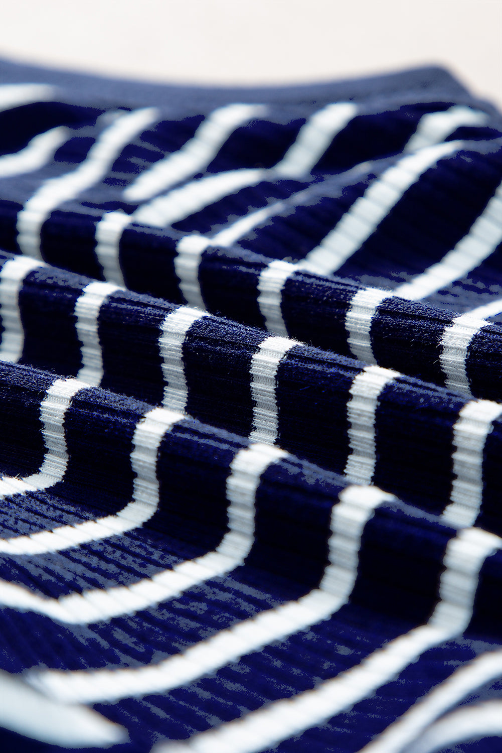 Blue Stripe Contrast Round Neck Sleeveless Slim Top
