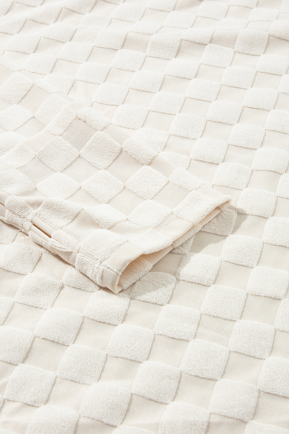 Bright Pink Lapel Neck Checkered Textured Short Sleeve Shirt