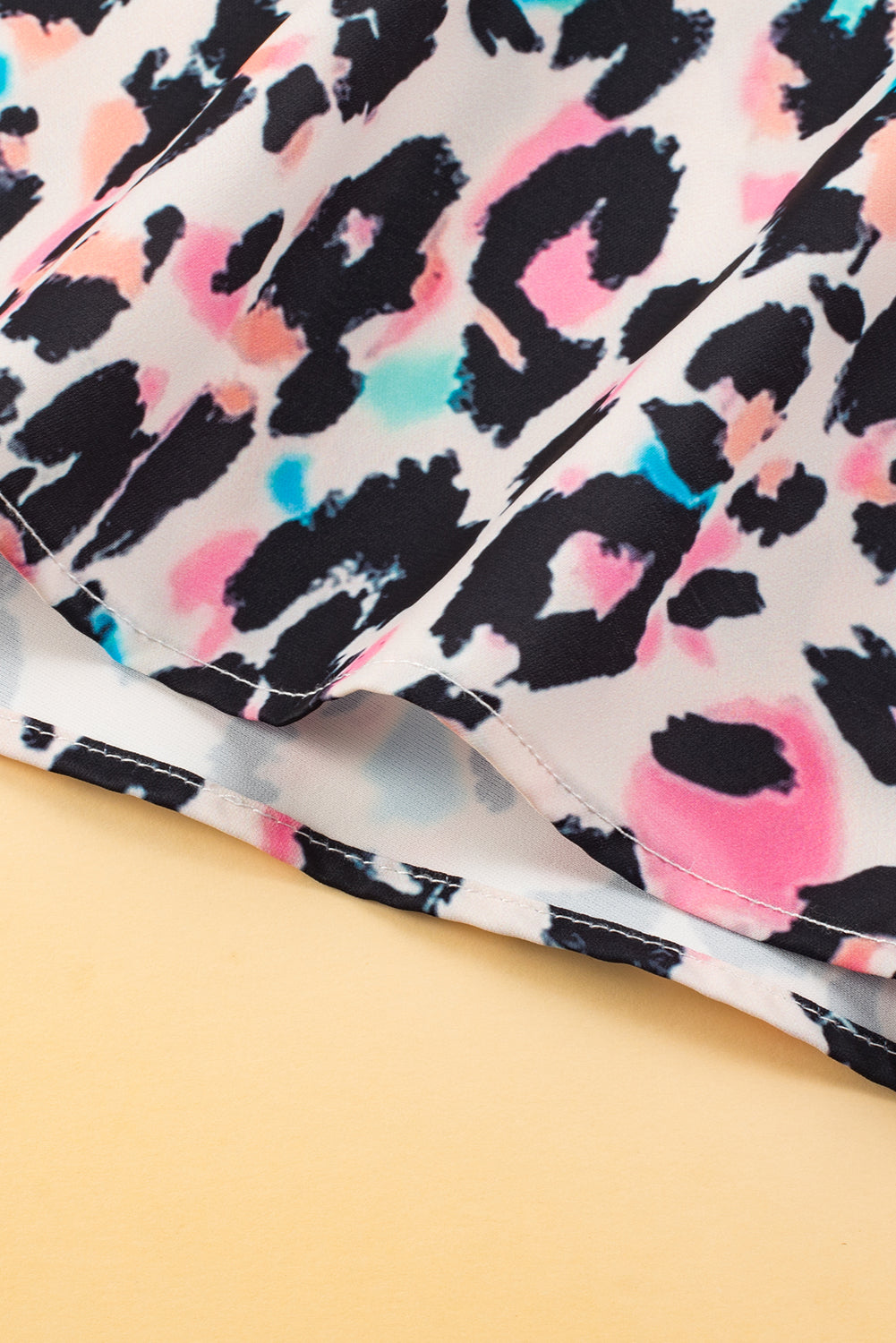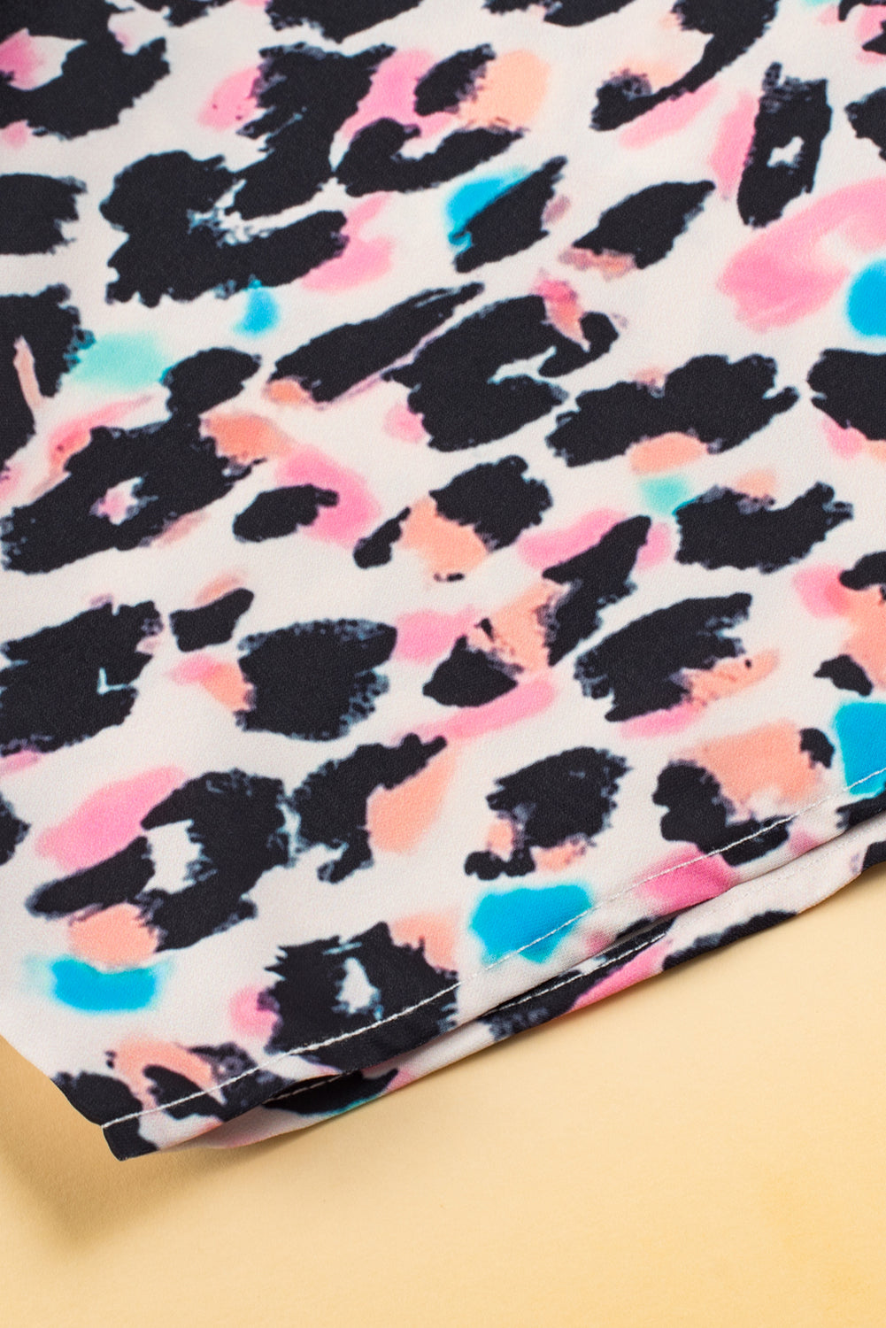 Brown Leopard Print V Neck Batwing Sleeve Plus Size Top
