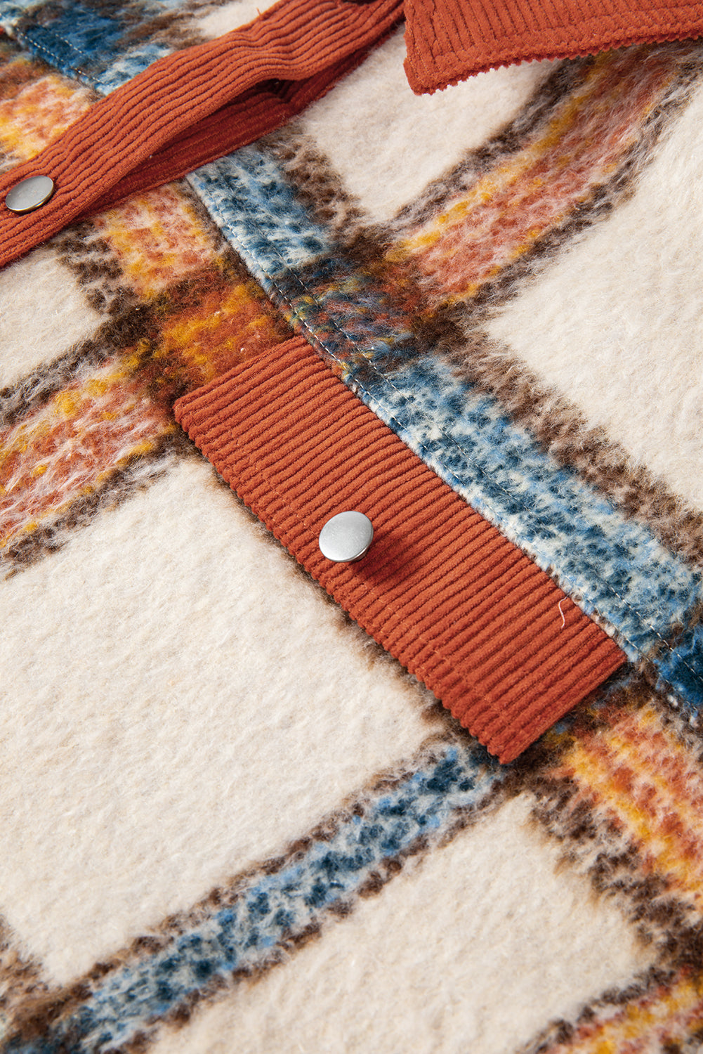 Brown Stripe Plus Size Plaid Print Collared Buttoned Jacket