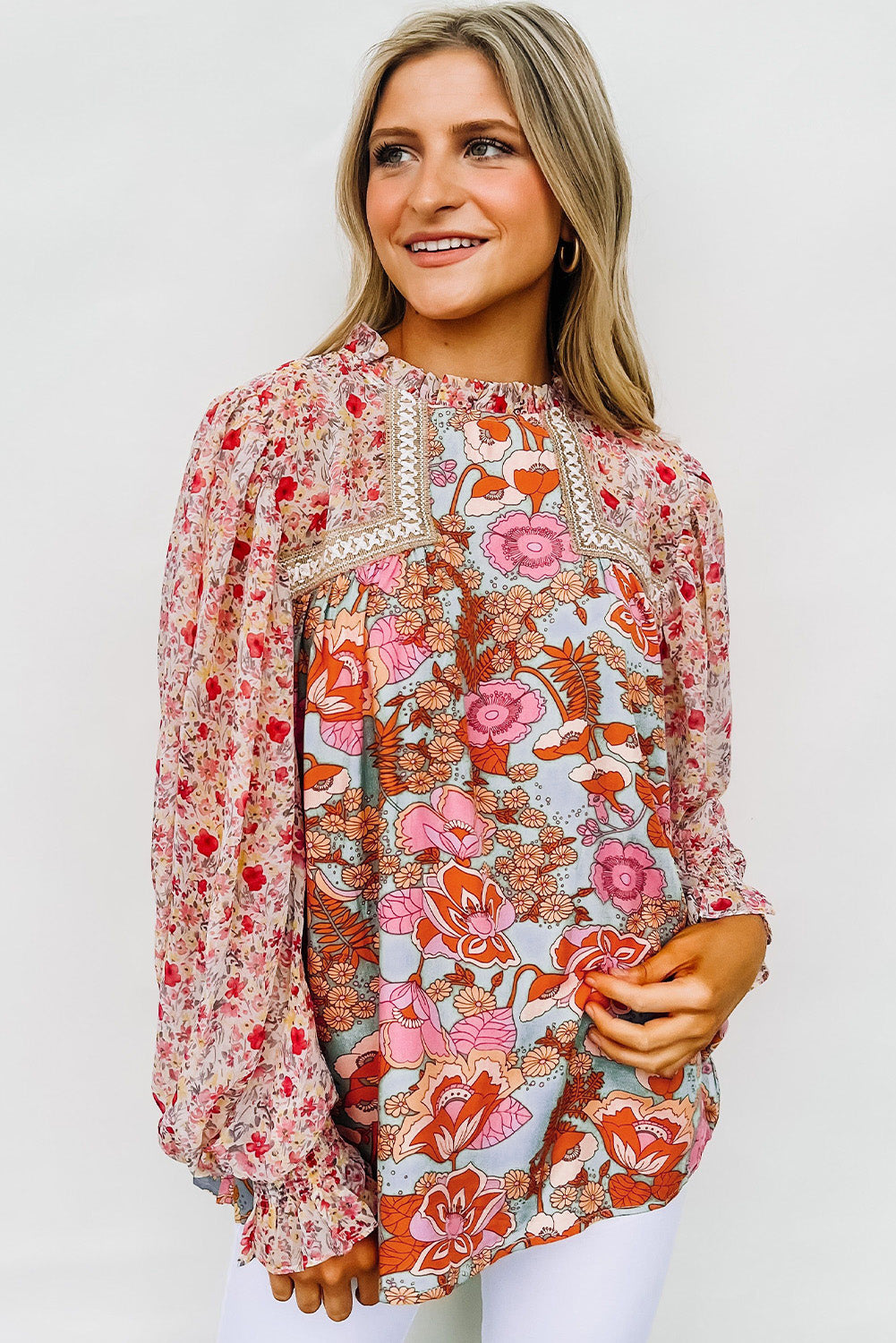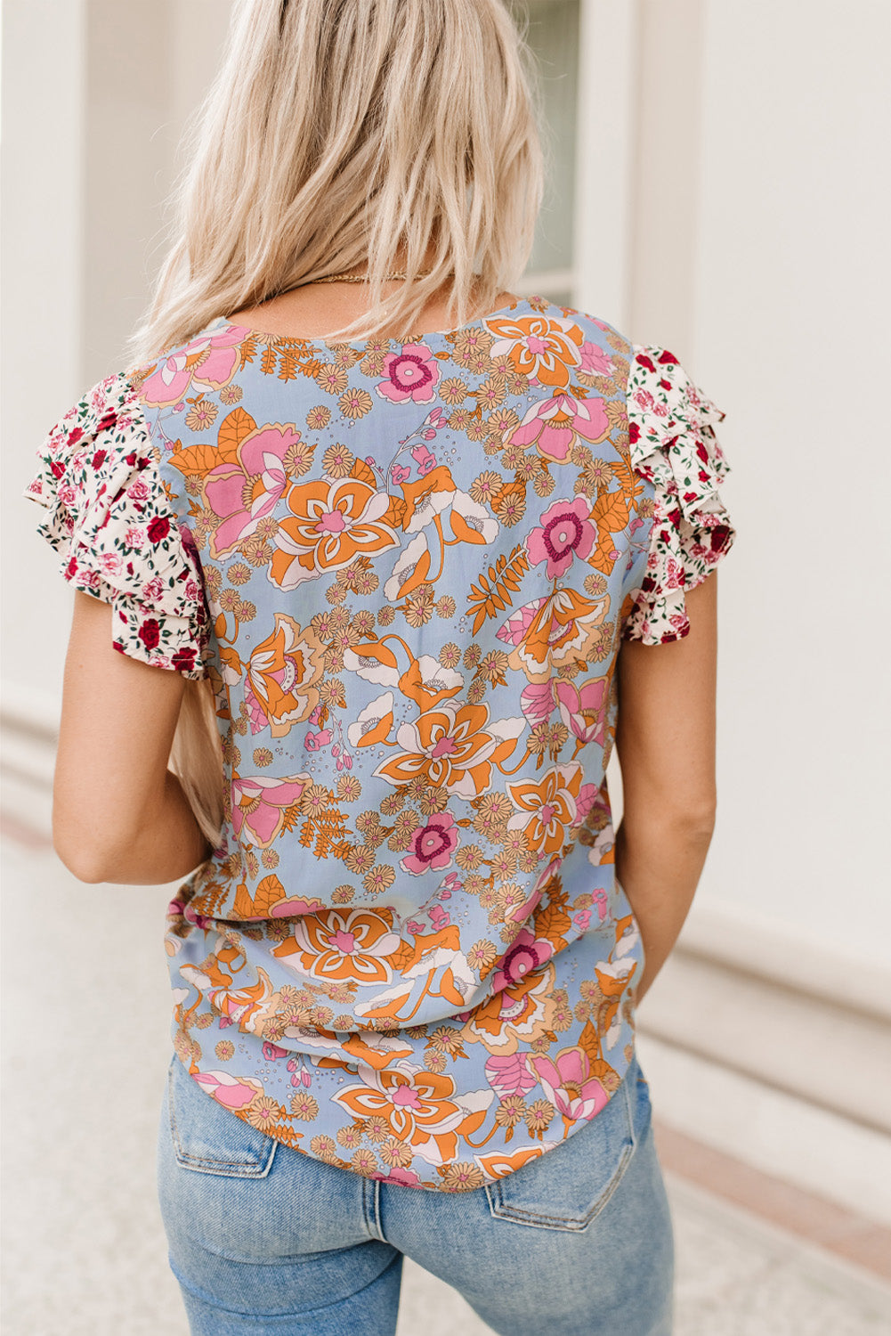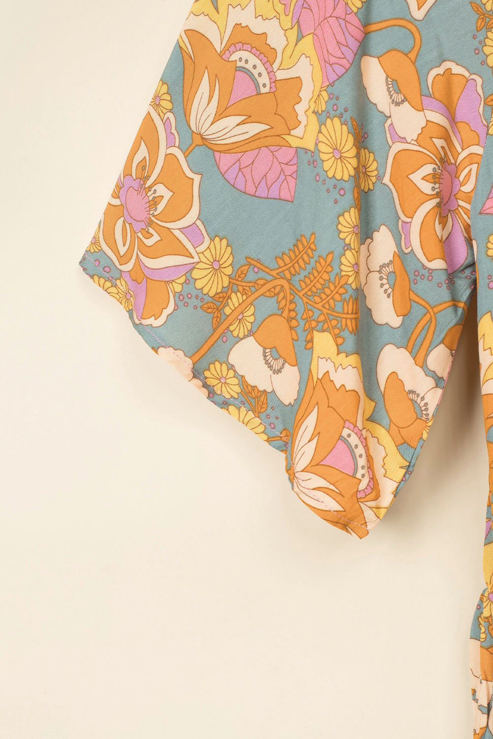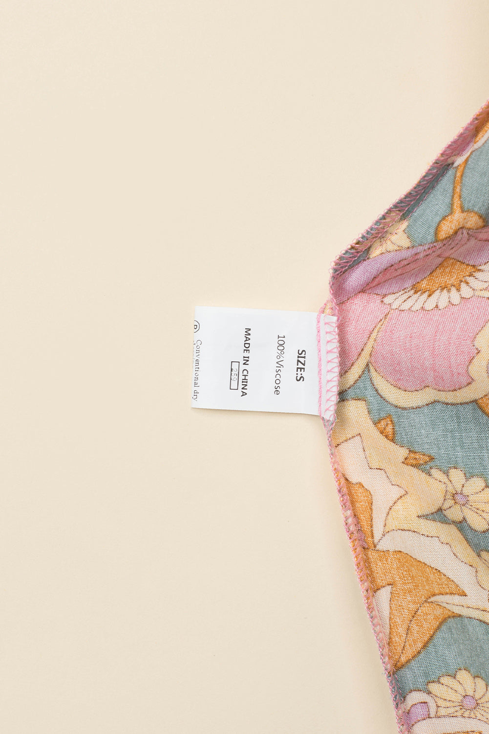 Brown Vintage Floral Smocked Bodice Flare Sleeve Tiered Long Dress