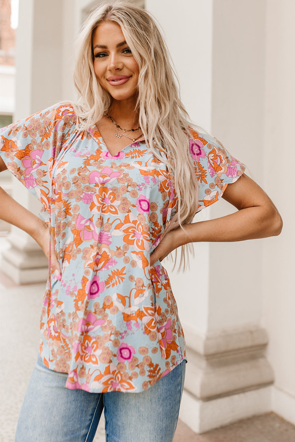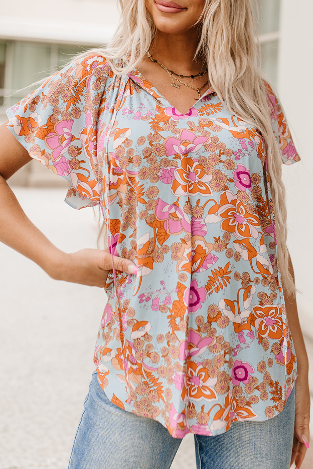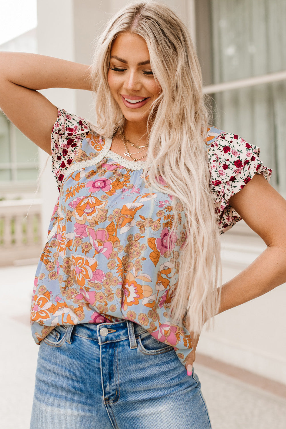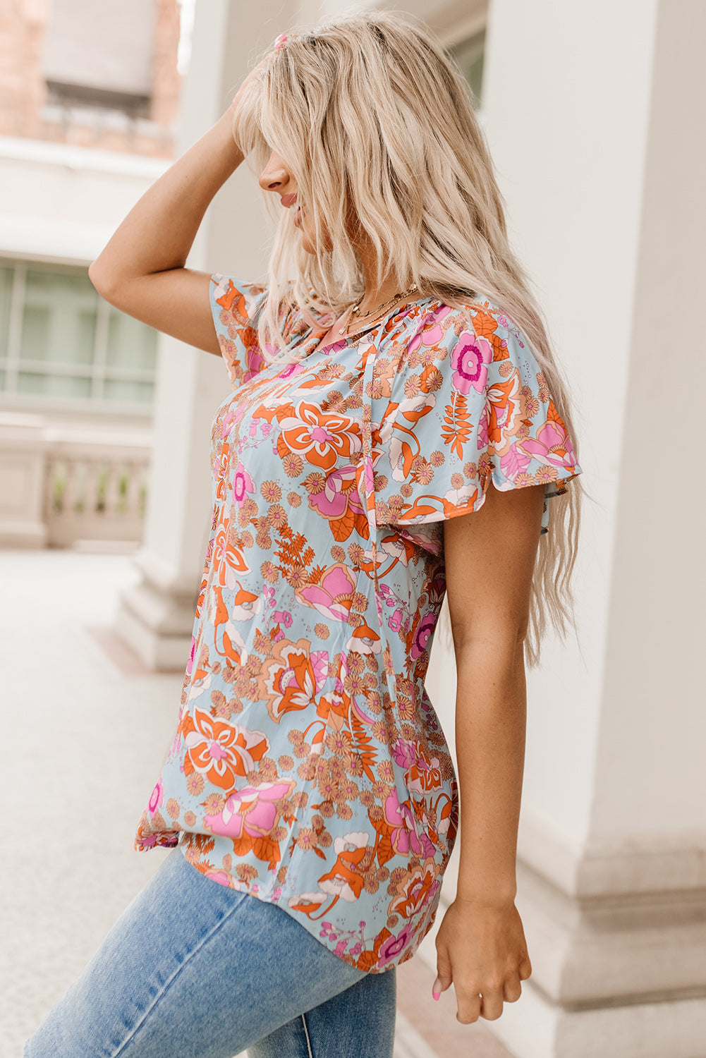 Brown Vintage Floral Smocked Bodice Flare Sleeve Tiered Long Dress