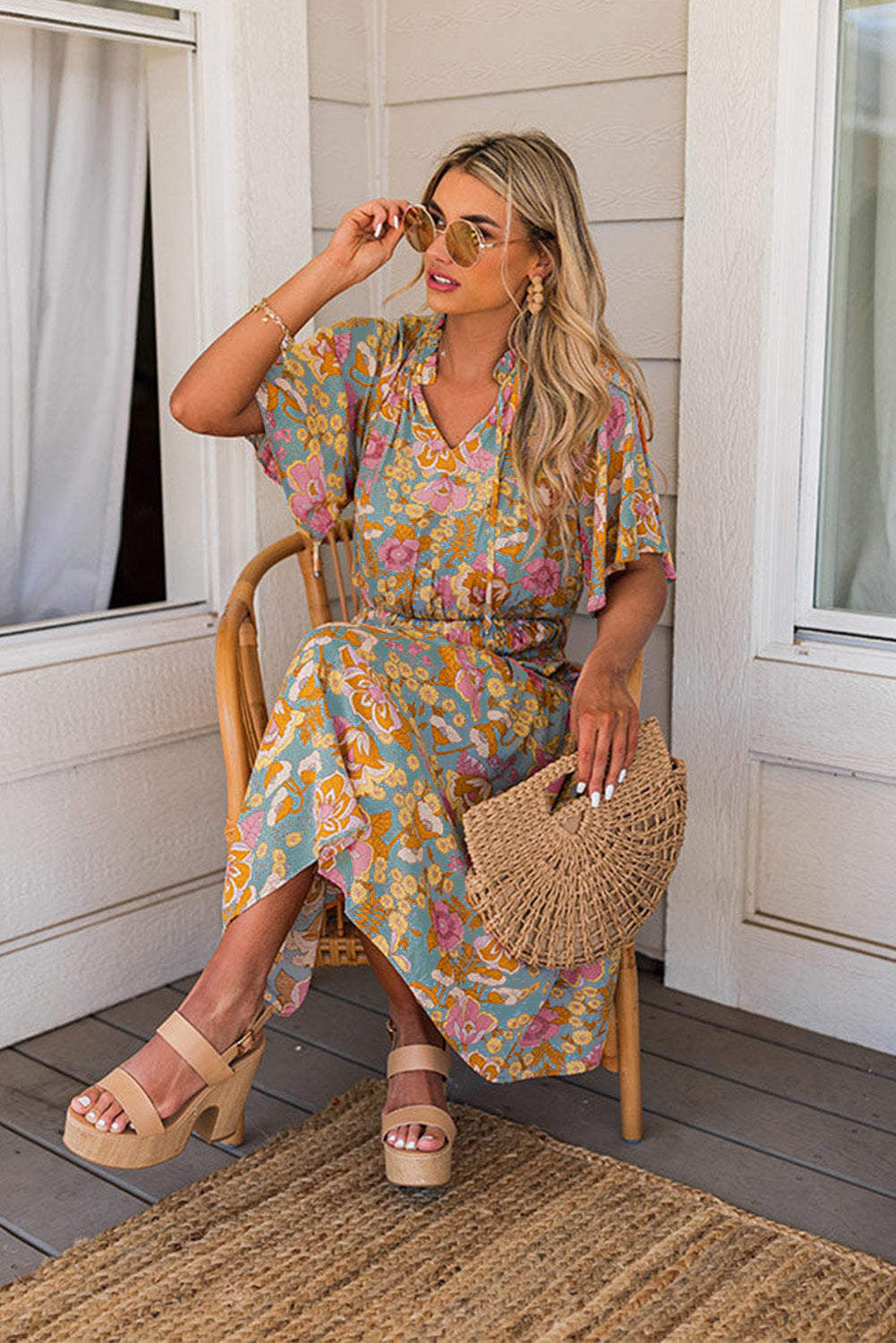 - Tiered maxi dress creates a flowy and ethereal silhouette