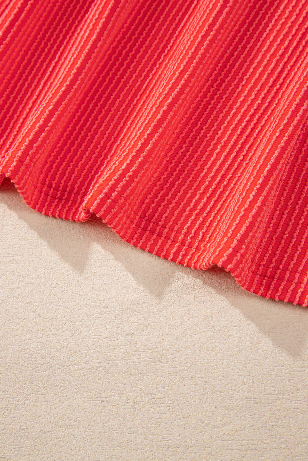 Casual Corded Knit Long Sleeve Top and High Waist Shorts Set
