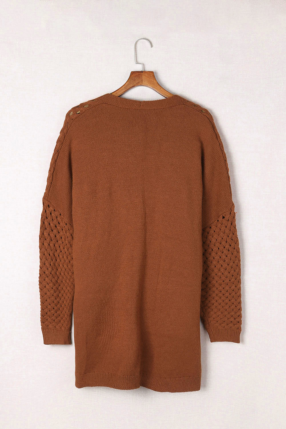 Chestnut Weave Knit Side Pockets Plus Size Cardigan