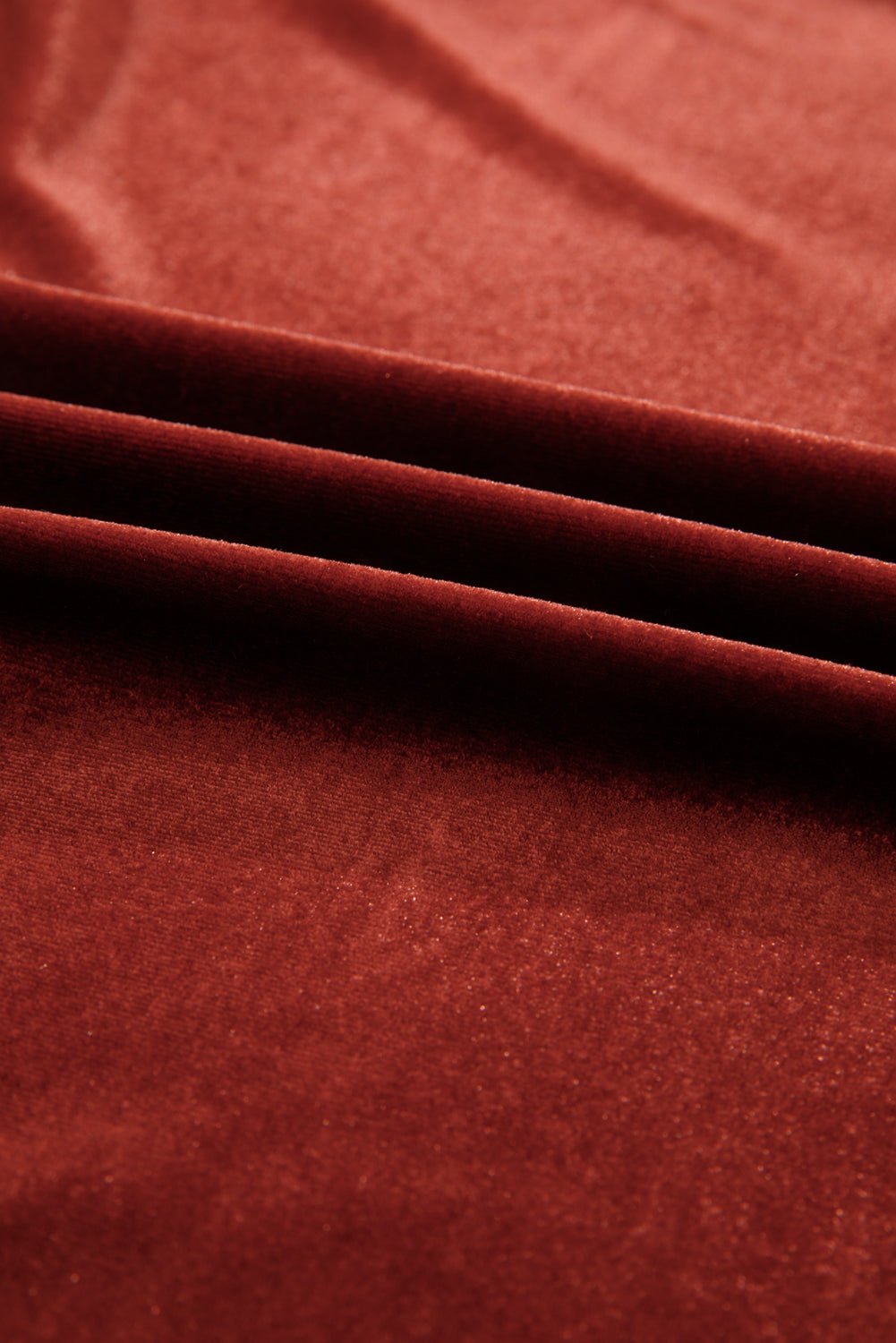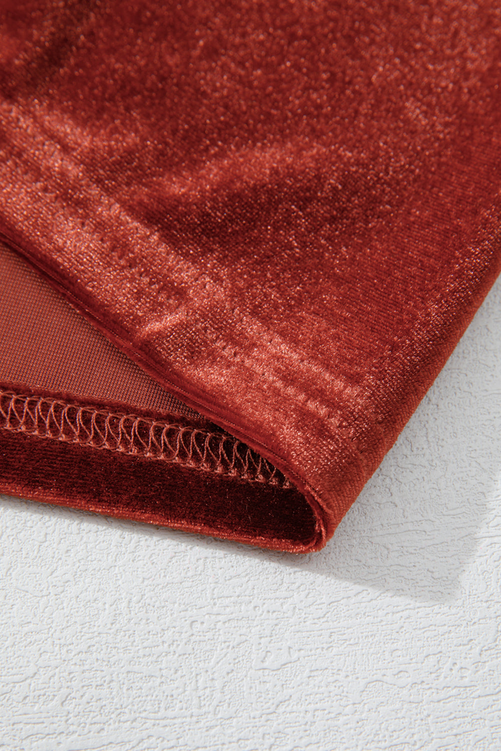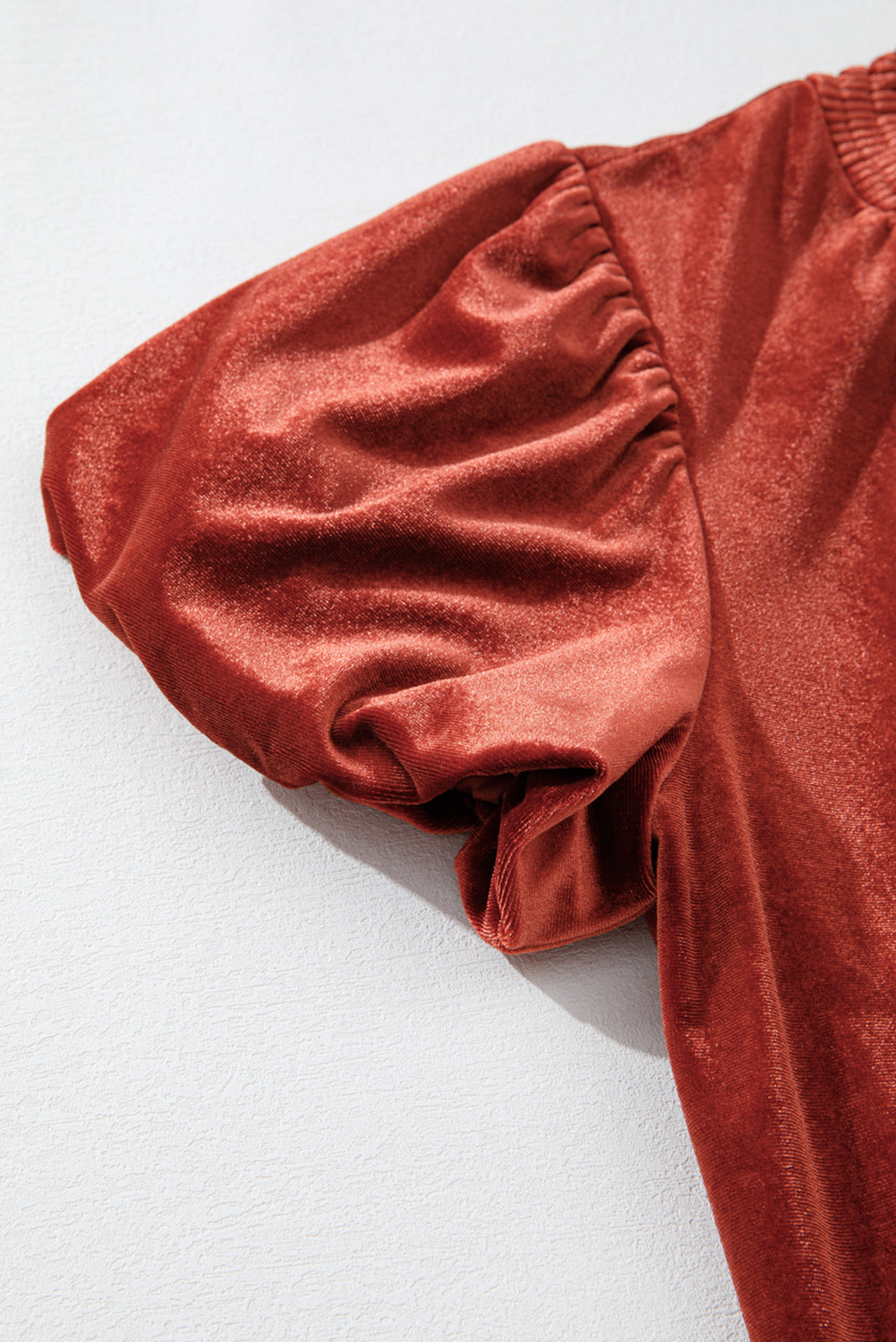 Cinnamon Velvet Smocked Neckline Puff Sleeve Shift Mini Dress