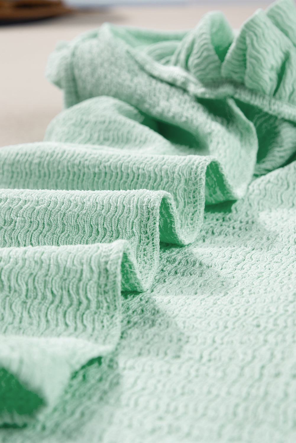 Clearly Aqua Ruffle Strap Crinkle Textured Tank Top