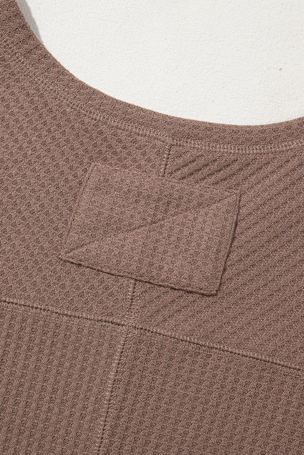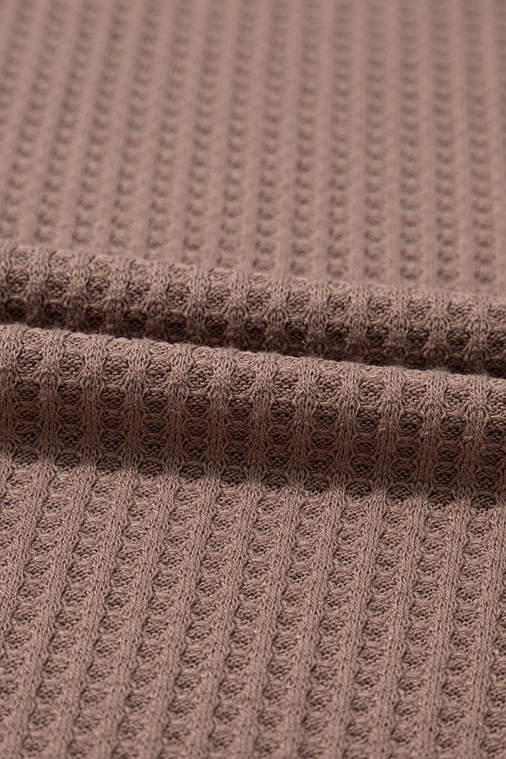 Coffee Waffle V Neck Long Sleeve Drop Shoulder Loose Blouse
