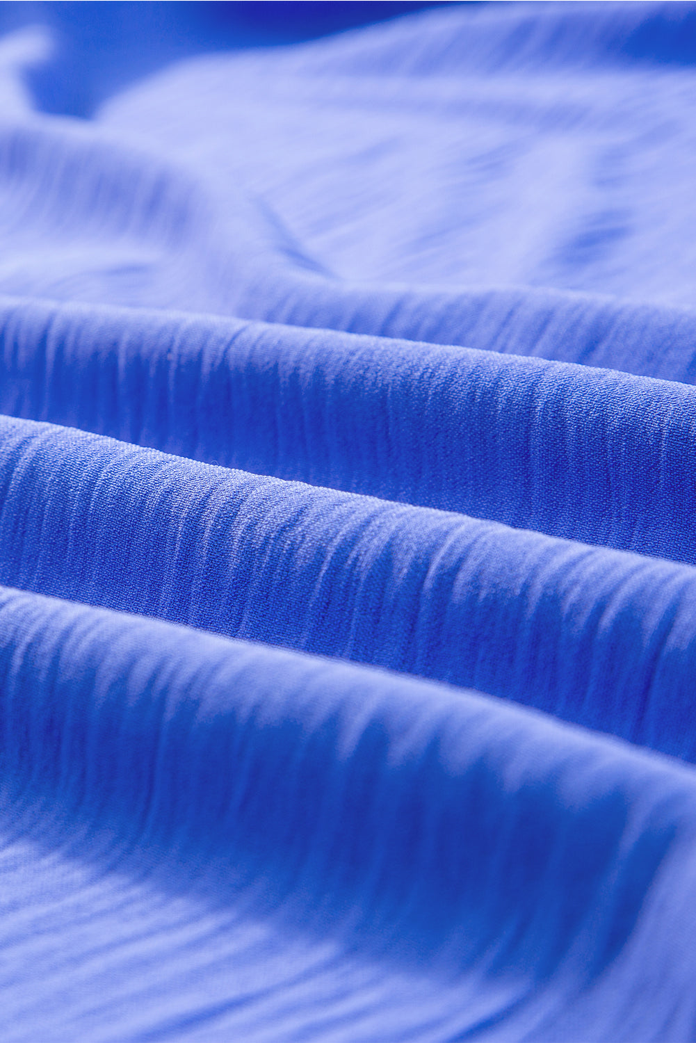 Dark Blue Boxy Collared Smocked Sleeve Cuffs Blouse