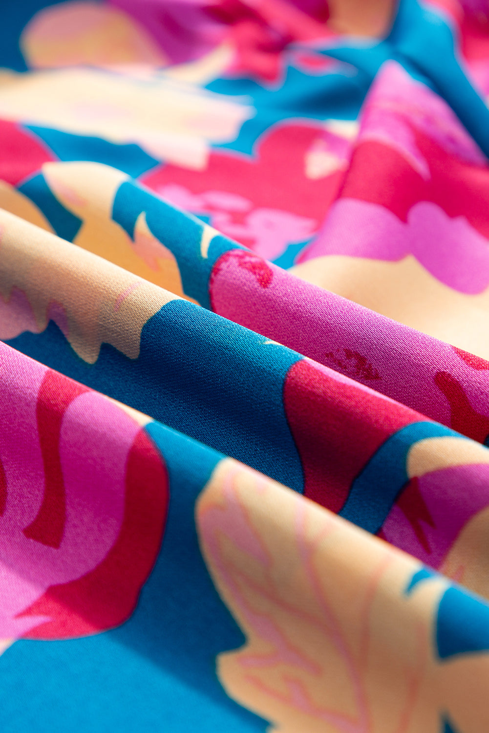 Dark Blue Square Neck Bubble Sleeve Ruffled Floral Dress