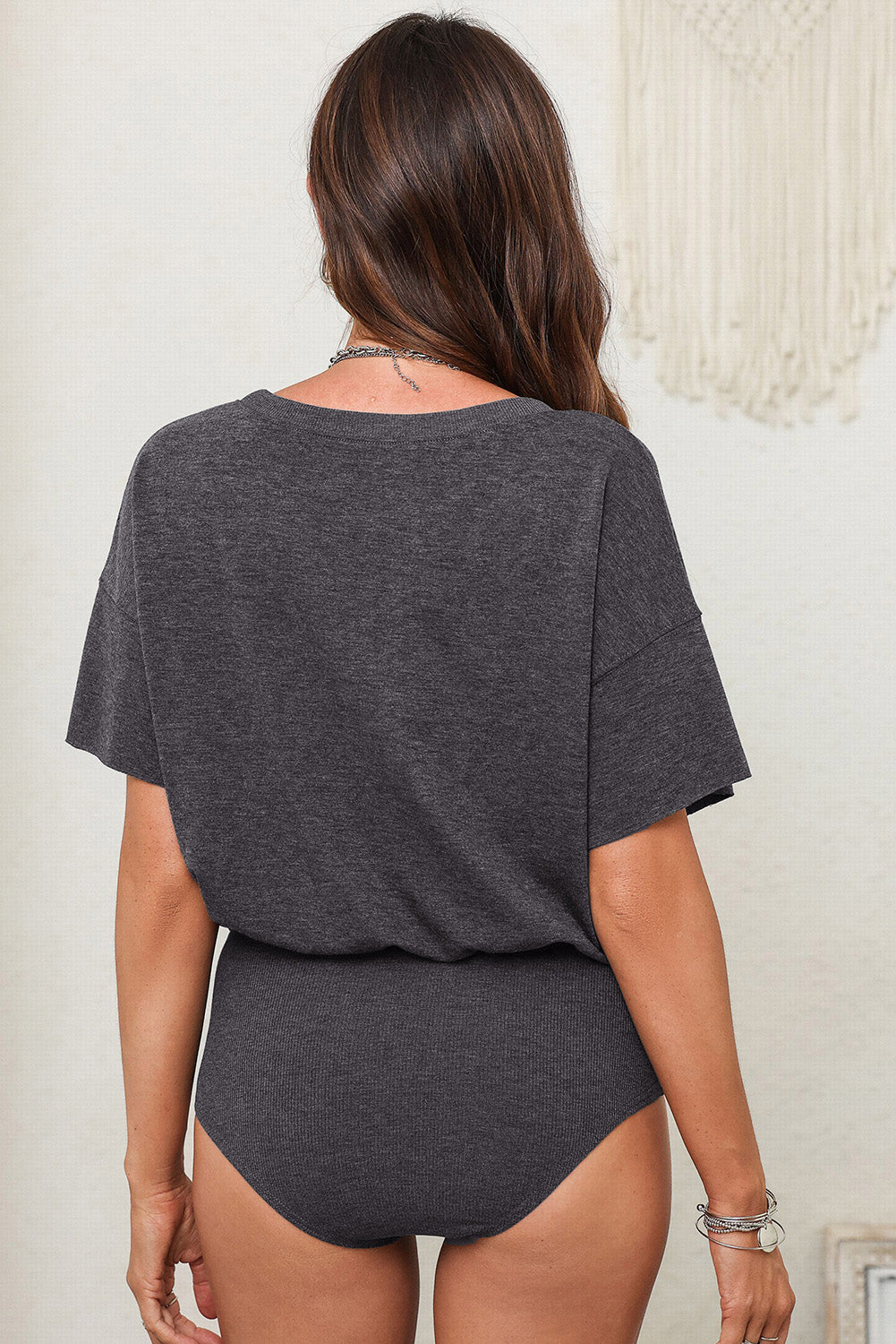 Dark Gray Drop Shoulder Sleeve Oversize Bodysuit