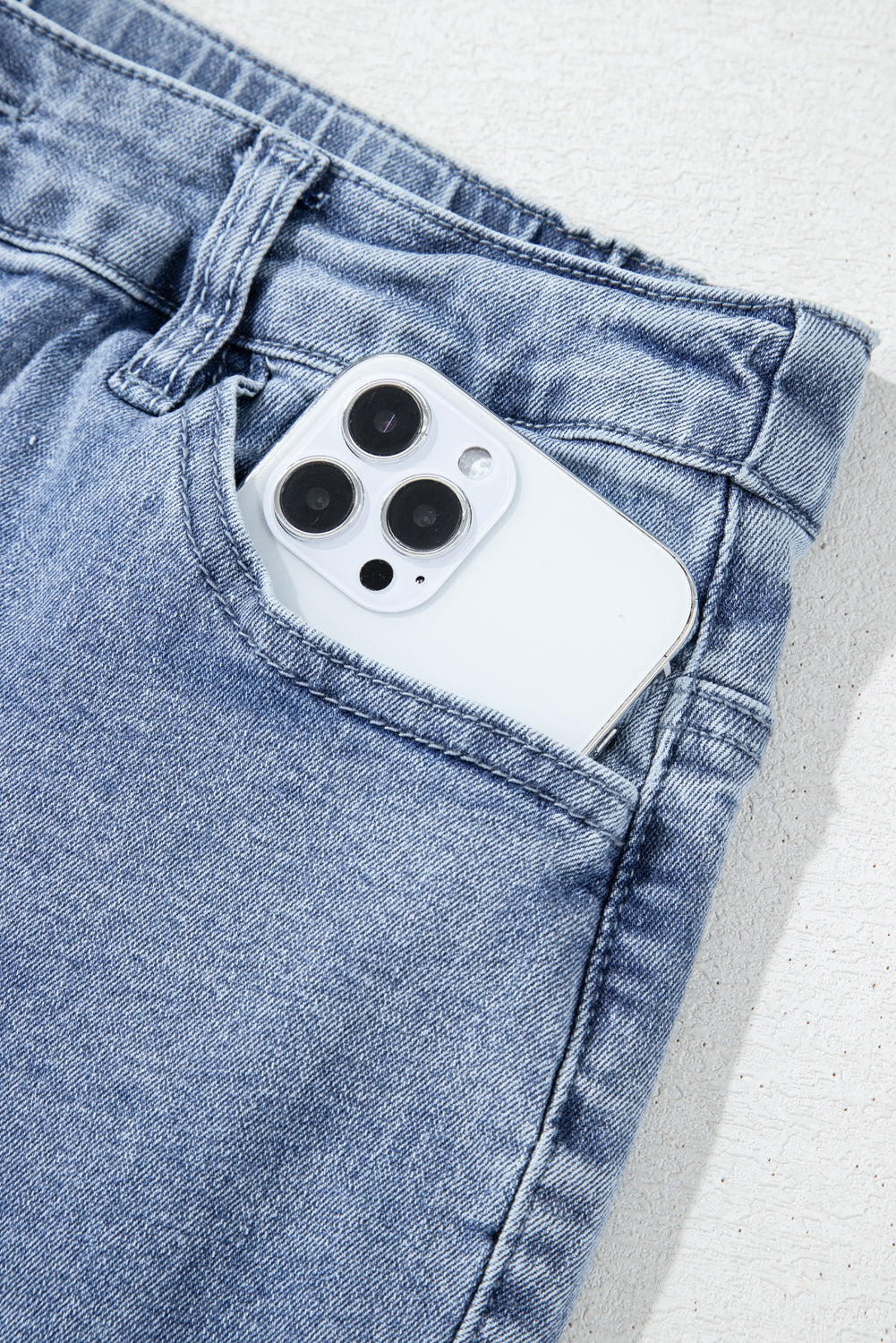 Dusk Blue Foiled Star Patchwork Straight Leg Loose Jeans