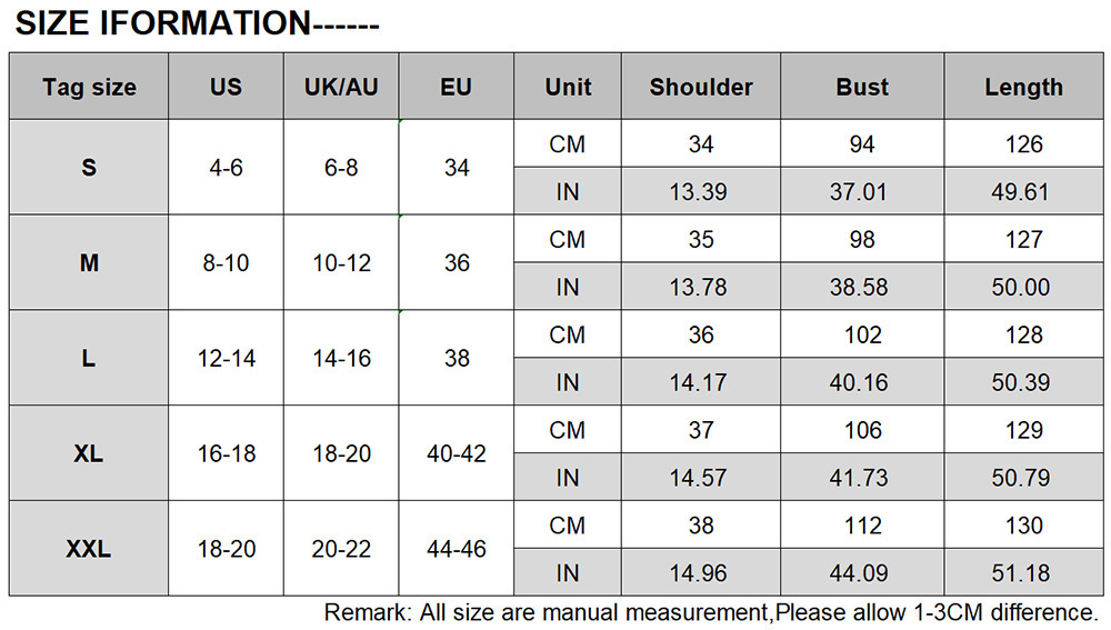 1. Asian sizes are 1 to 2 sizes smaller than European and American people. Choose the larger size if your size between two sizes. Please allow 2-3cm differences due to manual measurement. 2. Please check the size chart carefully before you buy the item, if you don't know how to choose size, please contact our customer service. 3.As you know, the different computers display colors differently, the color of the actual item may vary slightly from the following images.