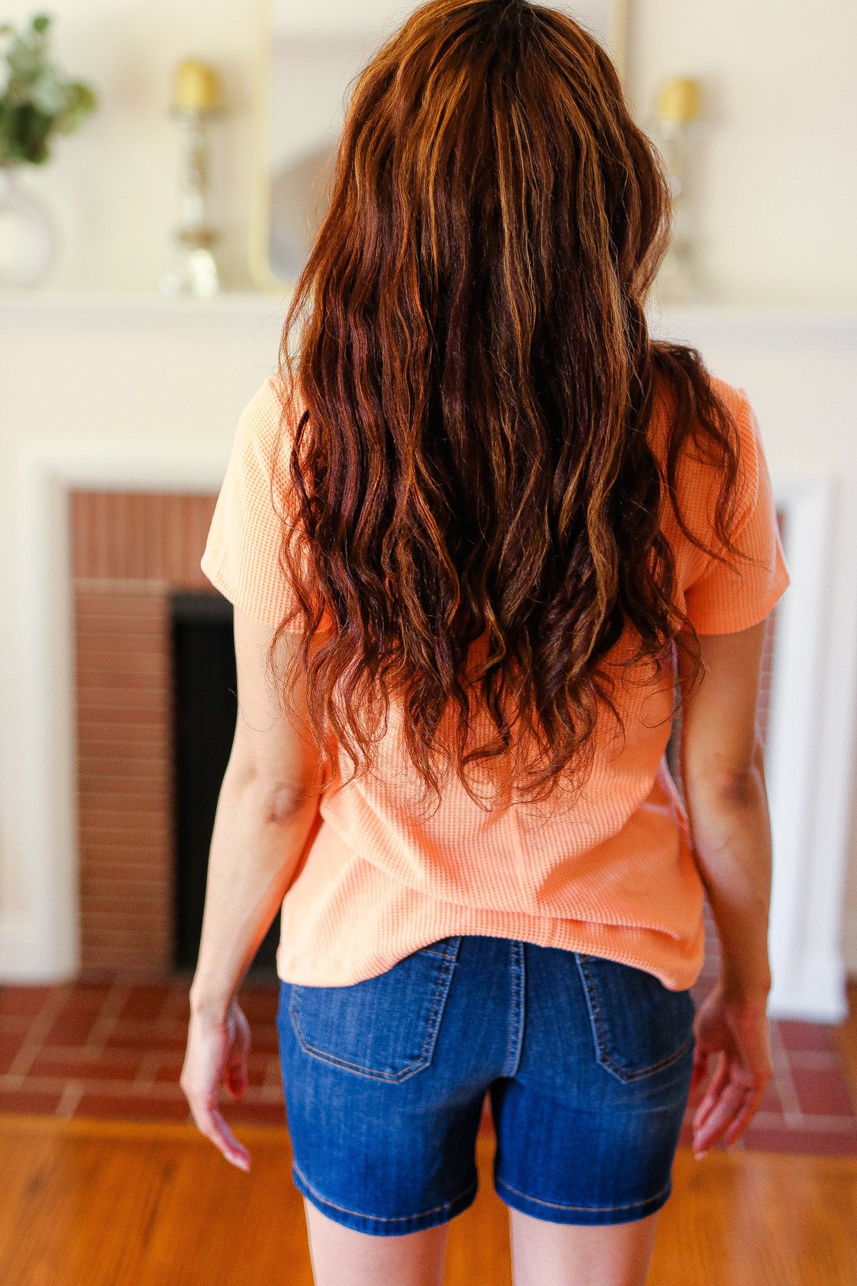 Feel Your Best Coral Baby Waffle Henley Neckline Top (Copy)