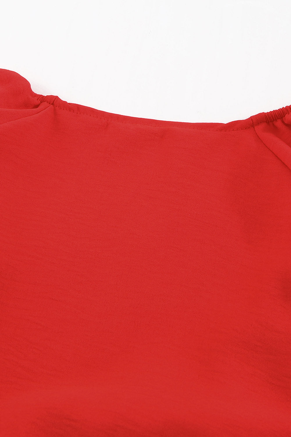 Fiery Red Tie Knot Puff Long Sleeve Romper