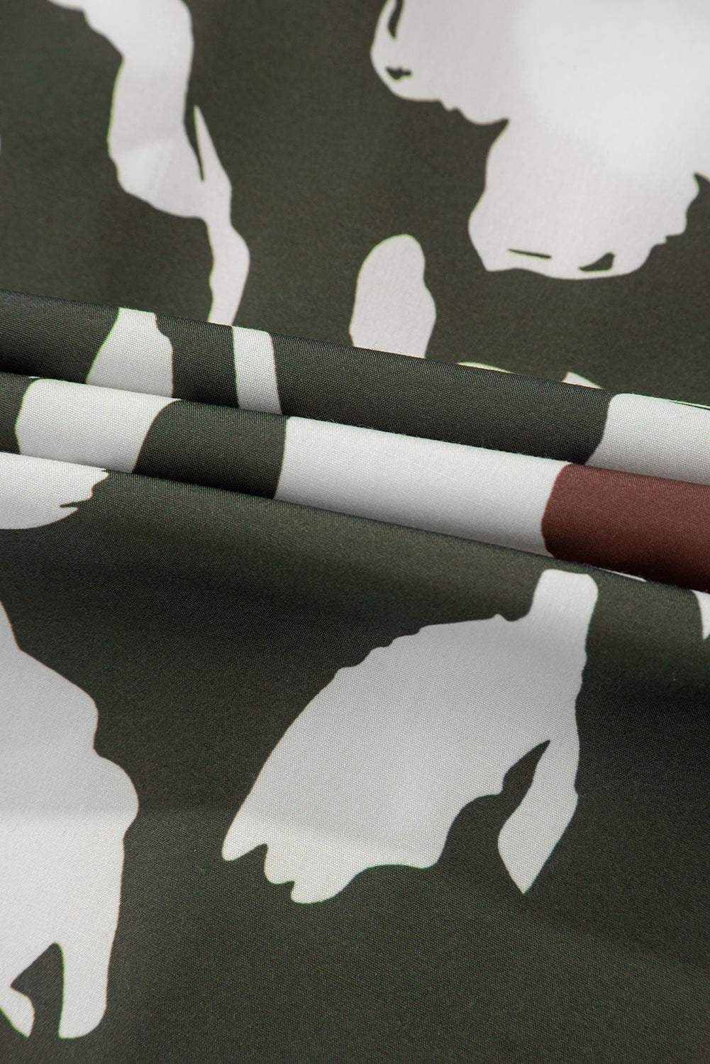 Four Leaf Clover Abstract Floral Print Puff Sleeve Half Button Blouse