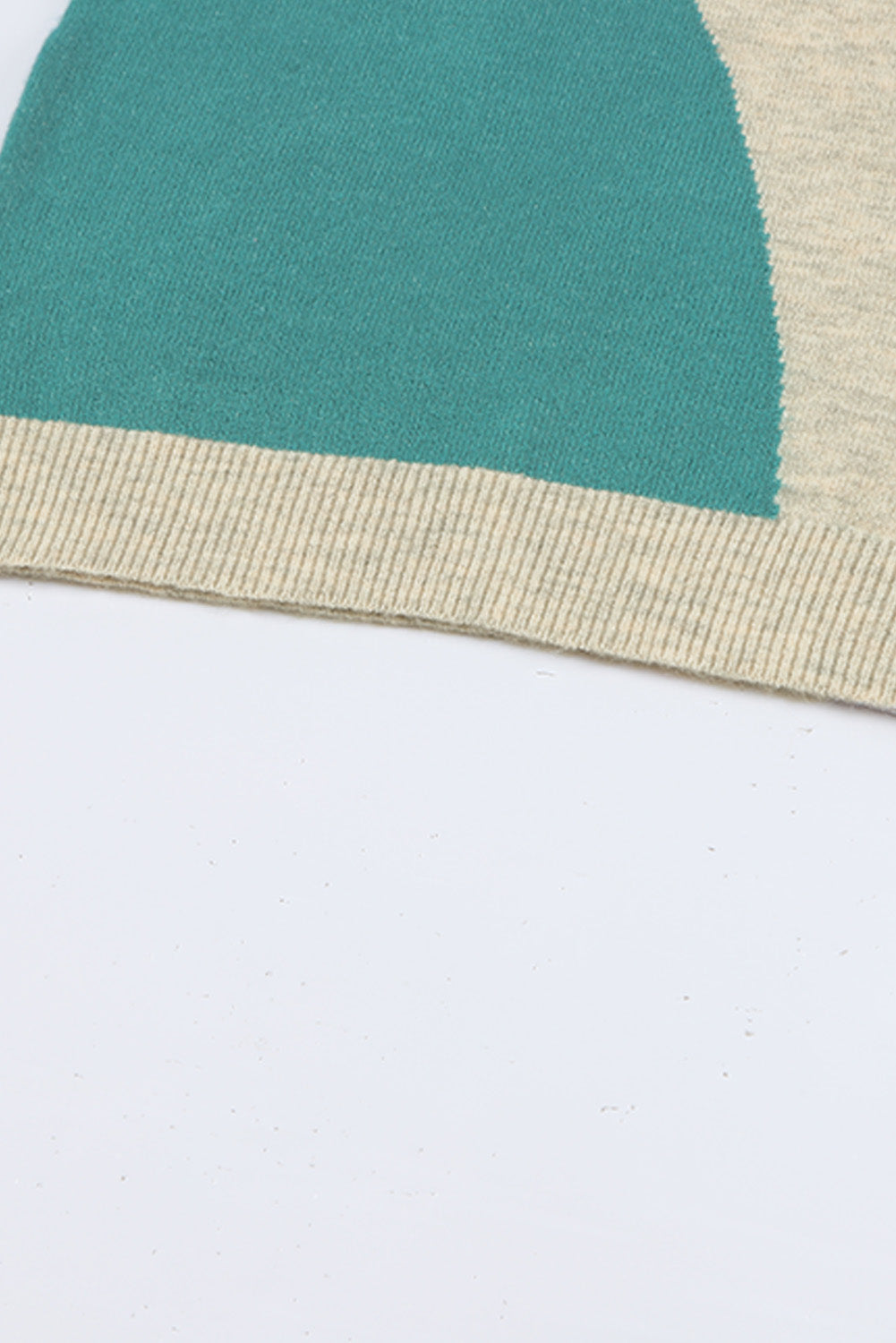 Gray Colorblock Ribbed Trim Round Neck Sweater
