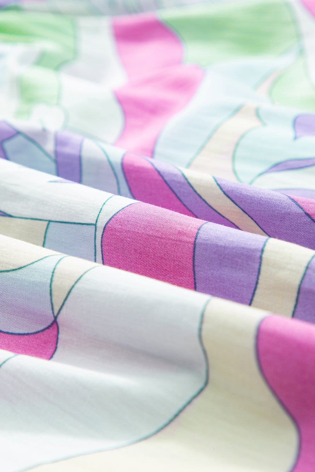 Green Abstract Print Bubble Sleeve Smock Detail Blouse