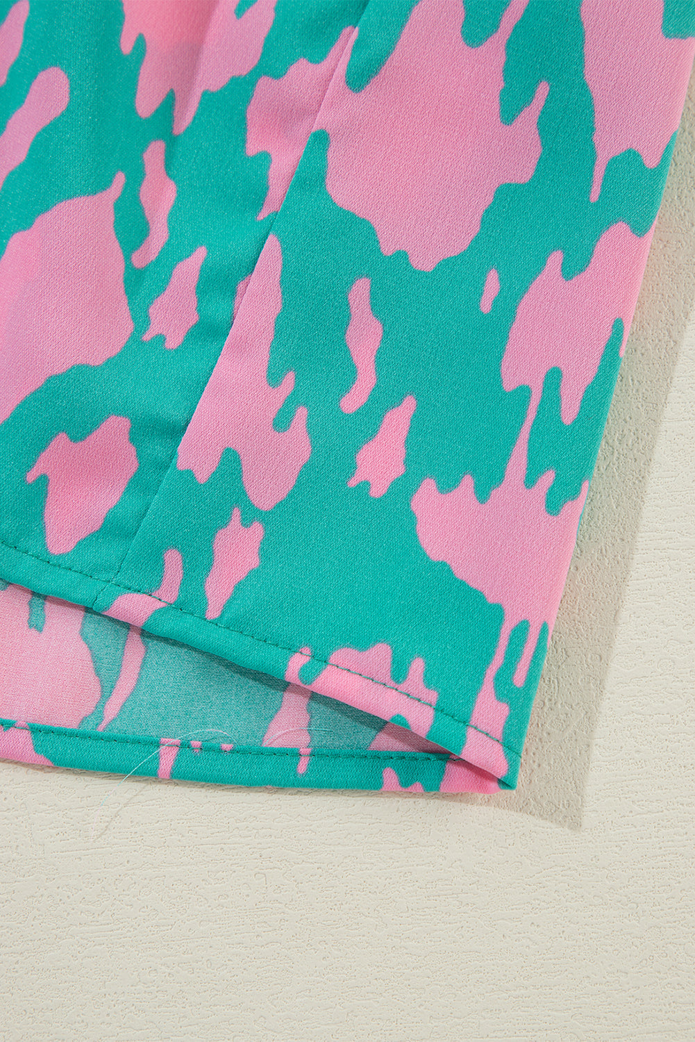Green Abstract Print Puff Sleeve Tied Notched Neck Long Dress