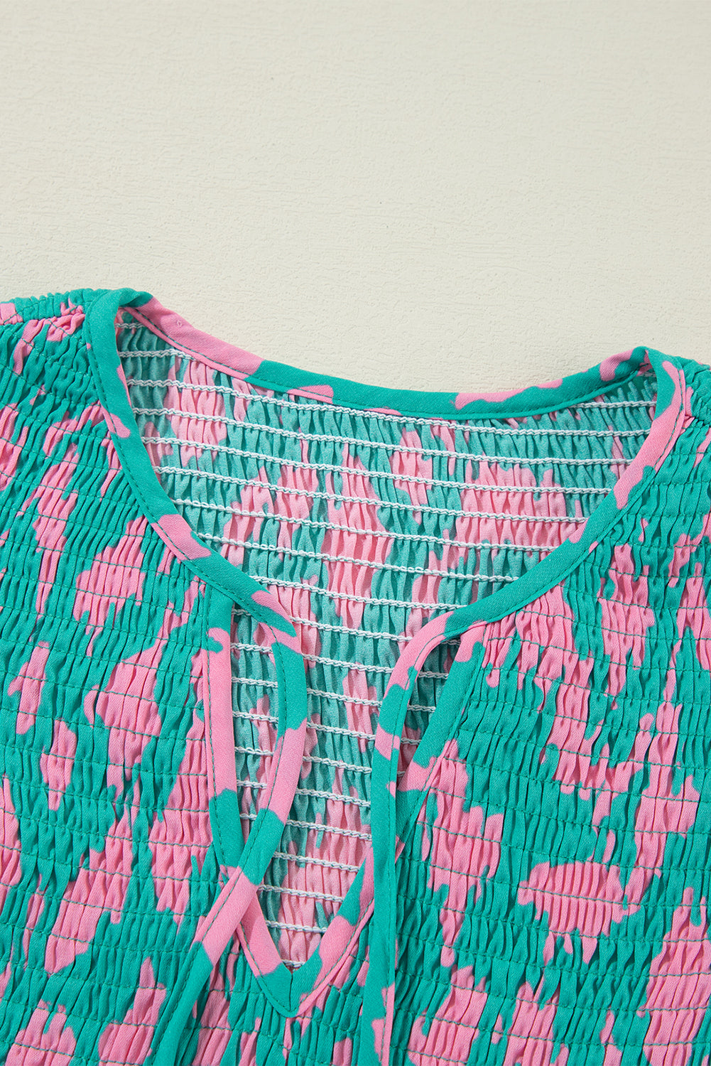 - Fashionable details include notched neck, shirred chest and puff sleeve.