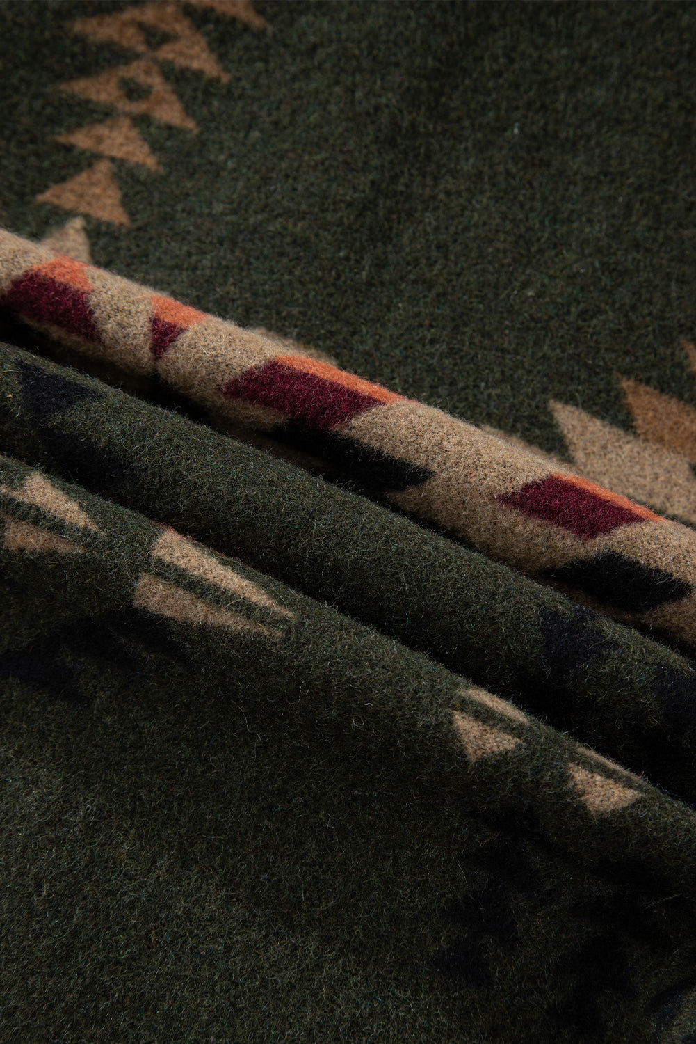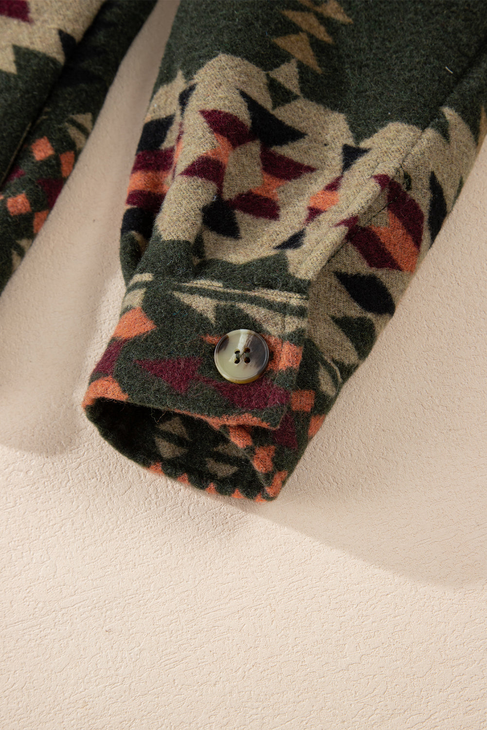 Green Aztec Print Flap Pockets Long Sleeve Shacket