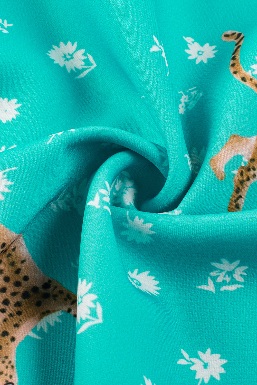 Green Cheetah Print V Neck Short Sleeve Plus Top