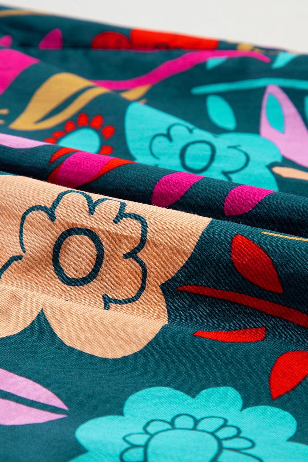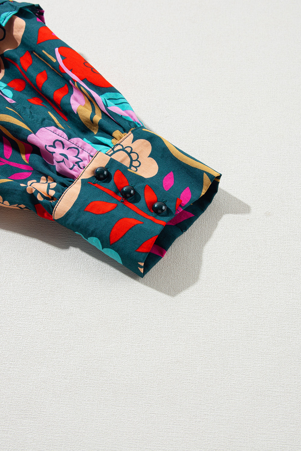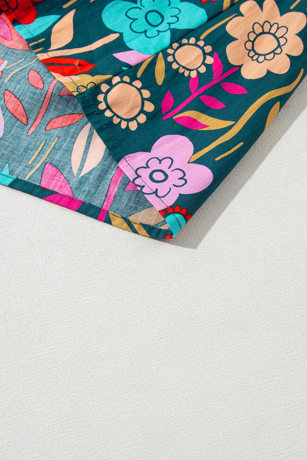 This loose blouse features a vibrant and eye-catching floral pattern