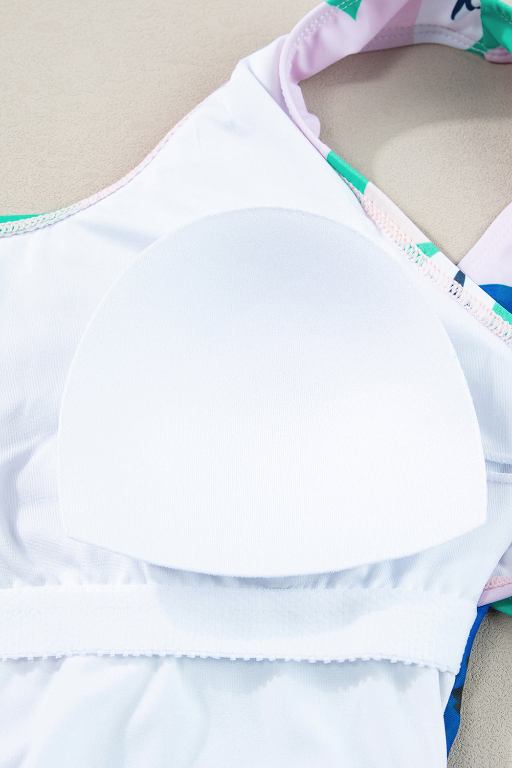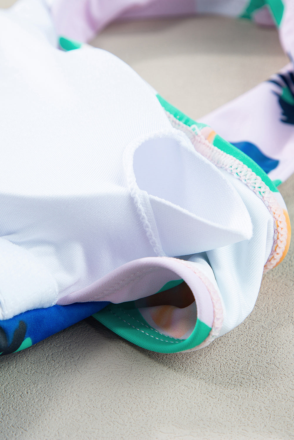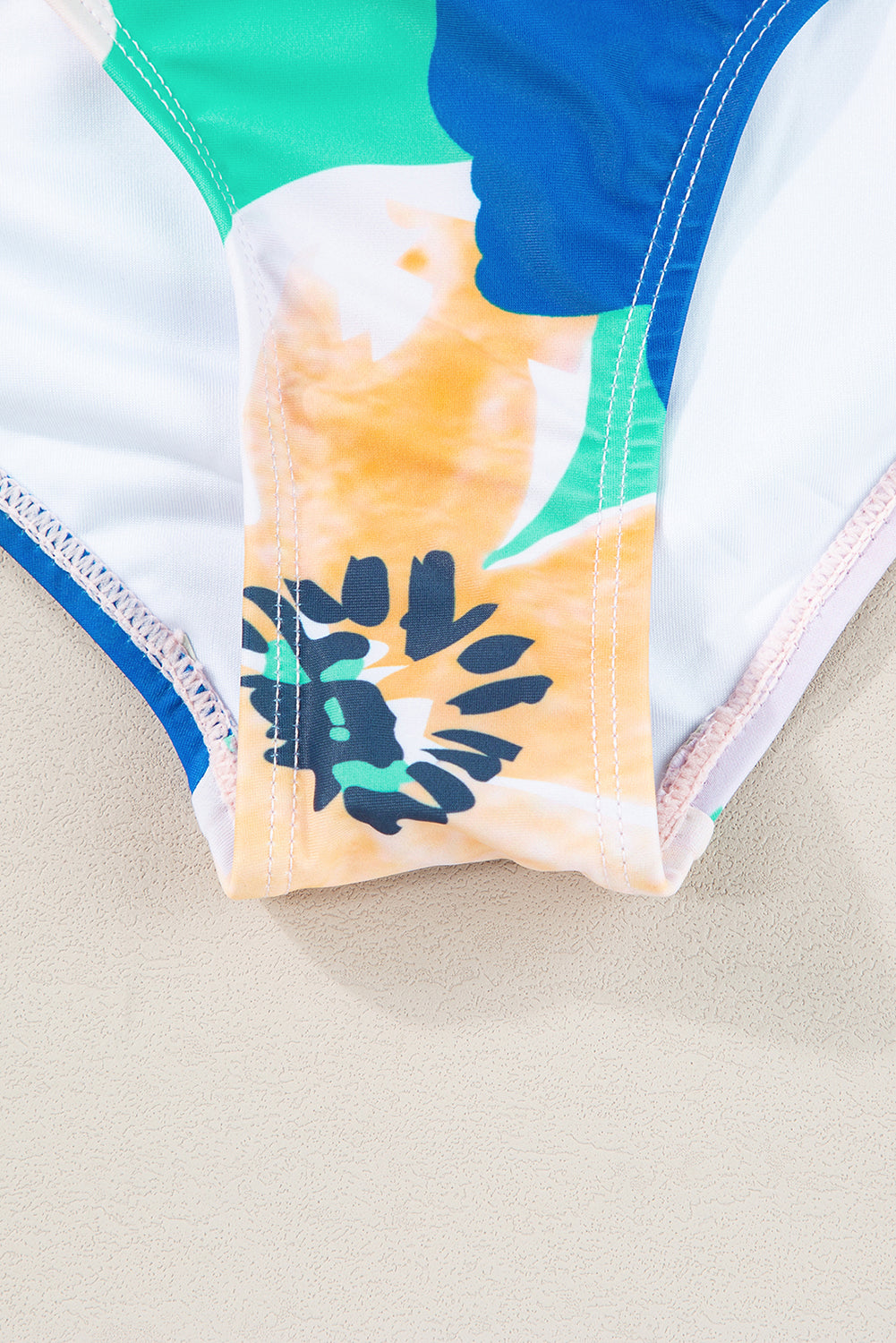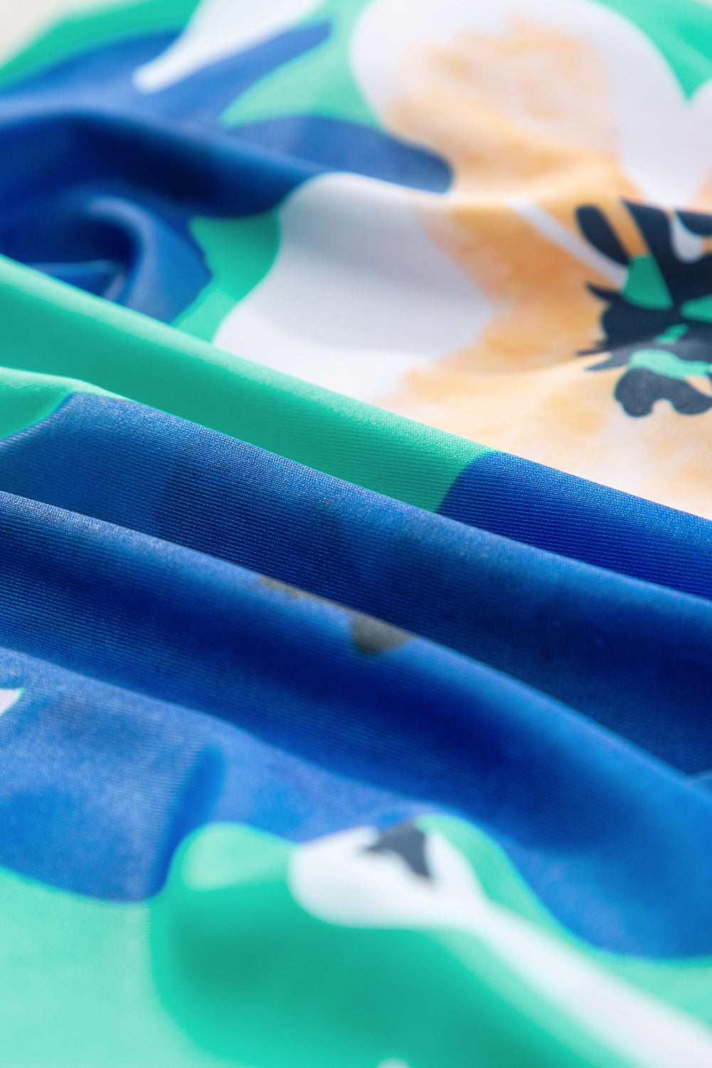 Green Floral Print Ruched Cut Out One Shoulder Monokini