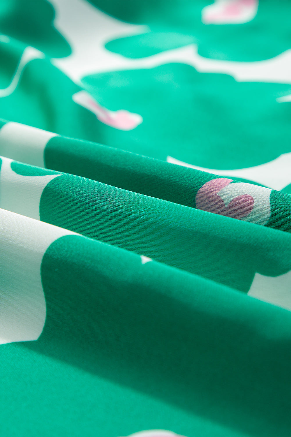 Green Floral Puff Sleeve Frill Neckline Blouse