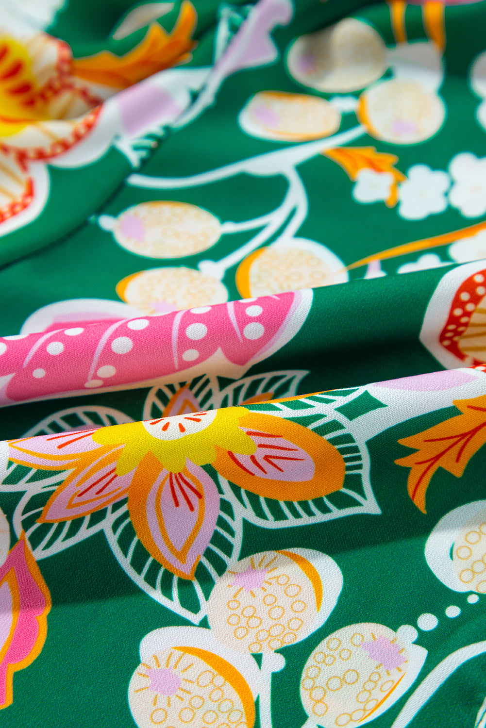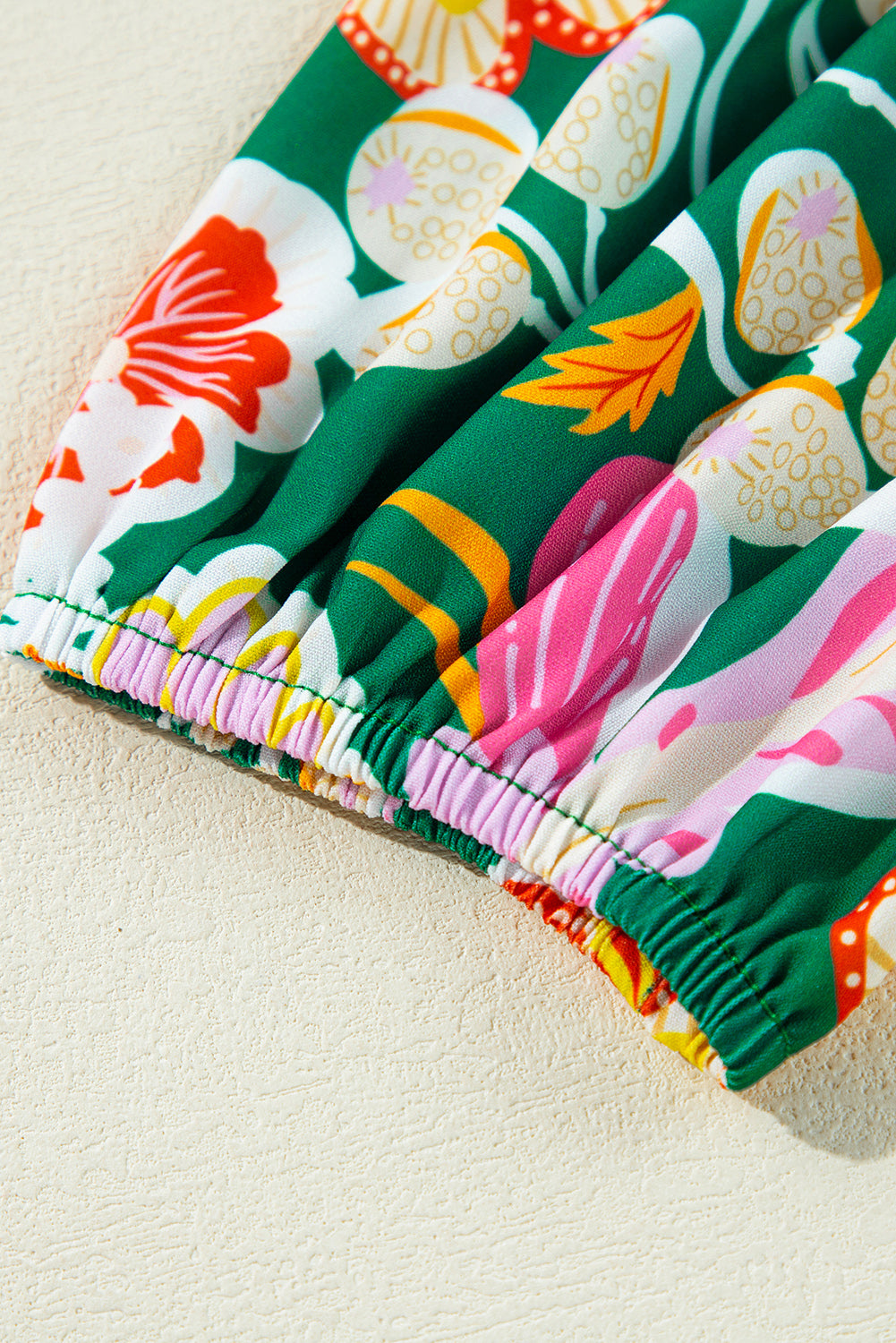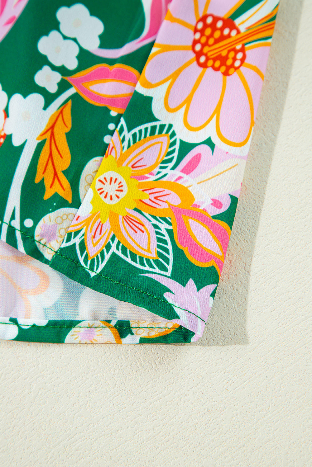 Green Floral Puff Sleeve V Neck Peplum Blouse