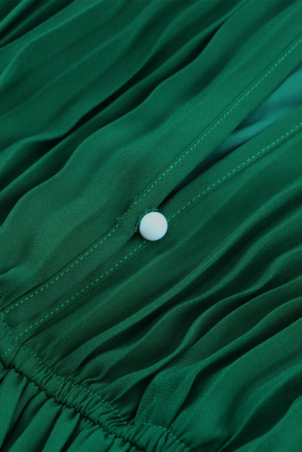 Green Halter Neck Pleated Wide Leg Jumpsuit with Belt