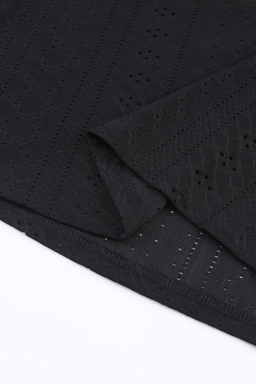 - This short-sleeve v-neck top features delicate open-lace trim details