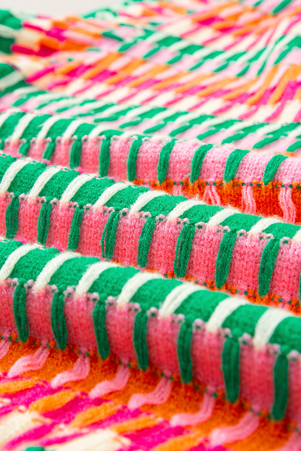 Green Multicolor Flutter Sleeve Knitted Sweater Top