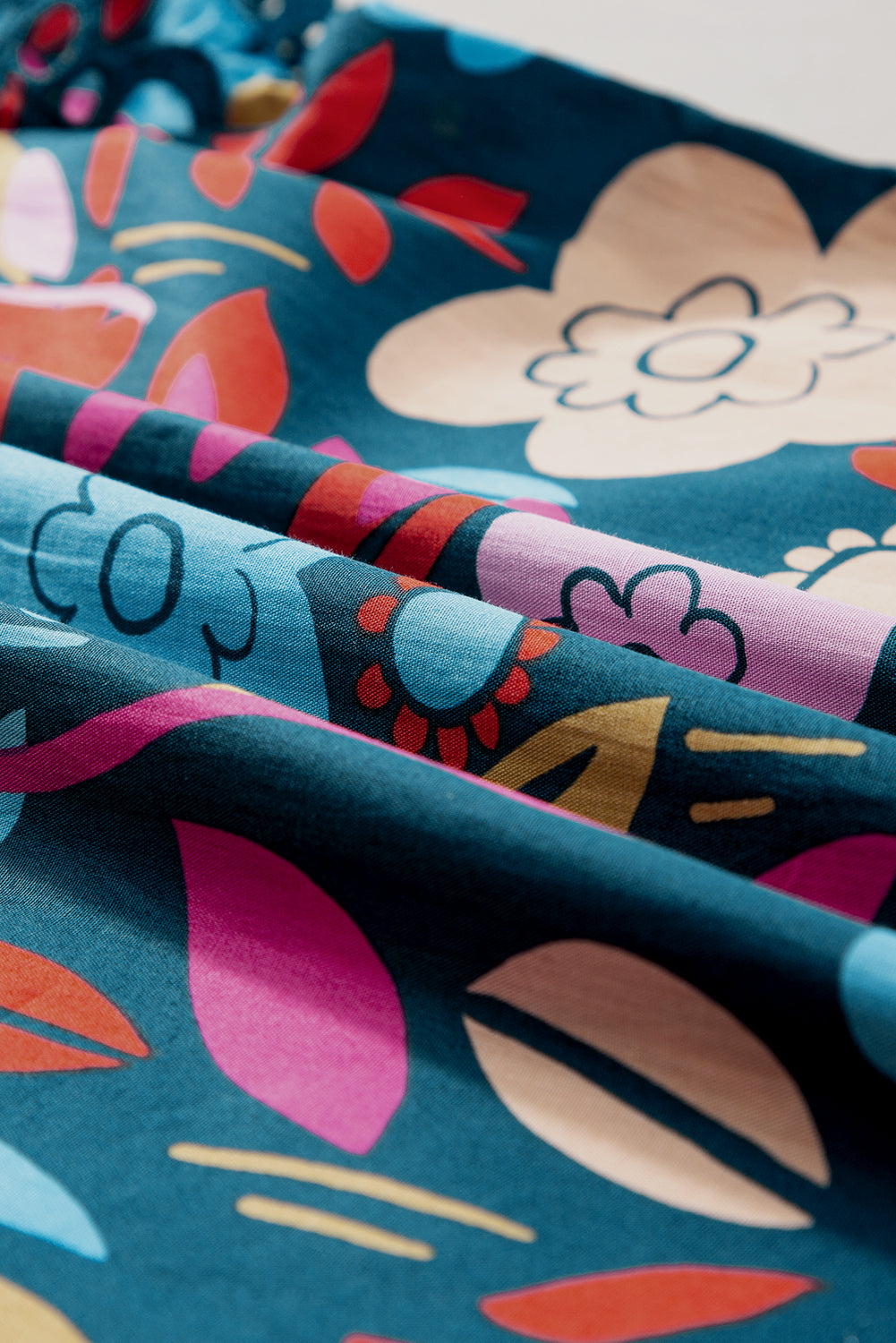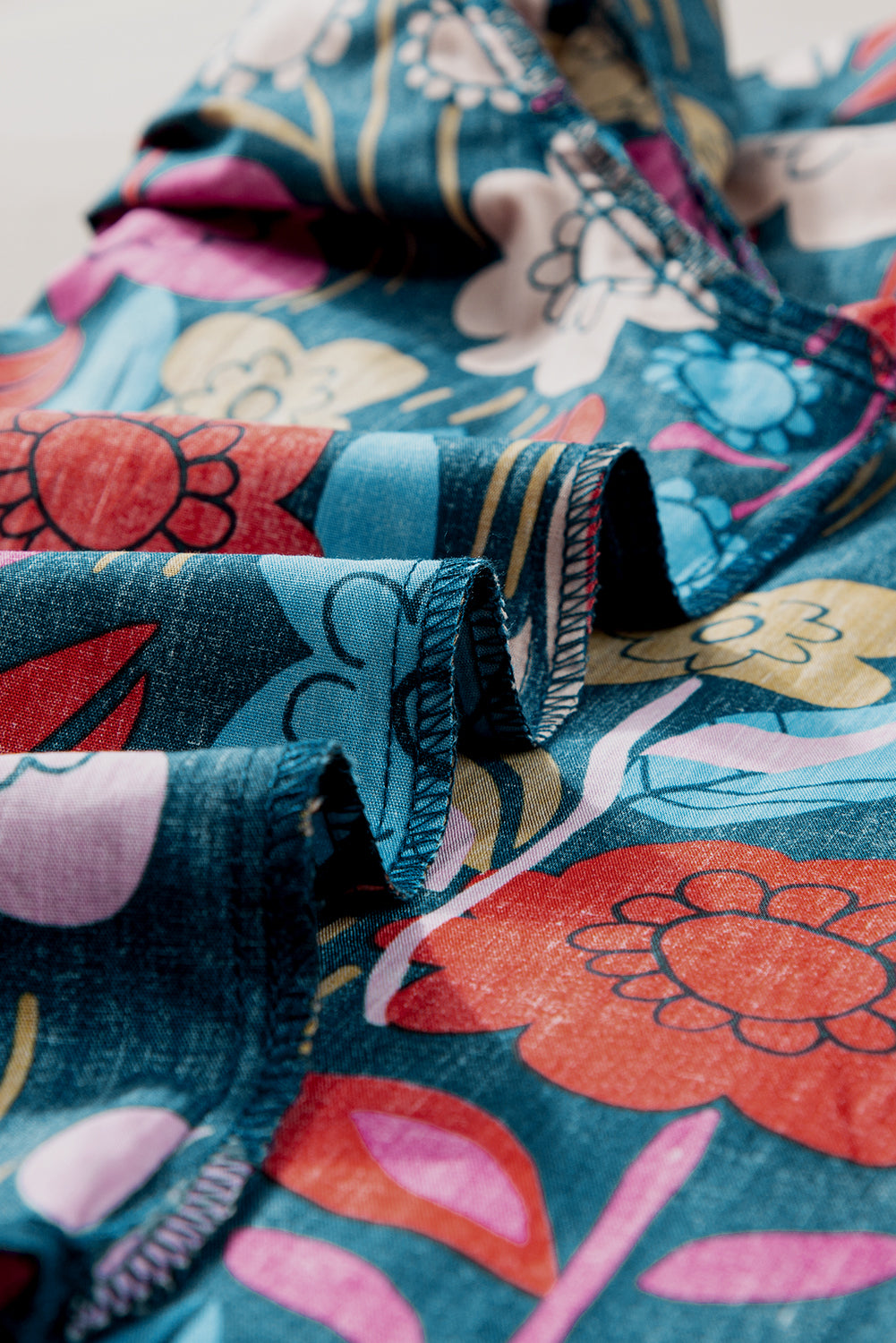 Green Trimmed Ruffle Sleeve Summer Floral Blouse