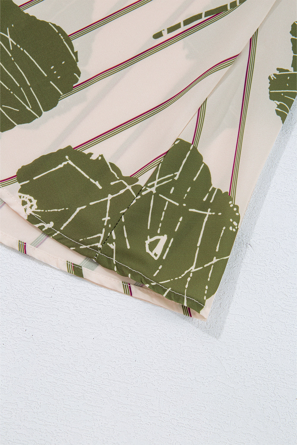 Guacamole Green Floral Striped Print Contrast Piping Puff Sleeve Dress