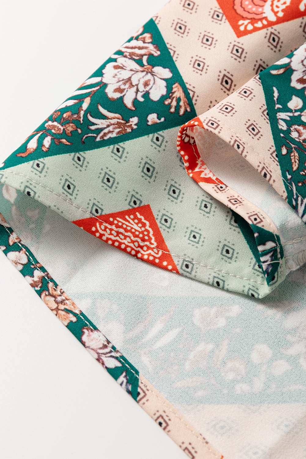 Jet Stream Paisley Geometric Patchwork Crew Neck Loose Fit Top