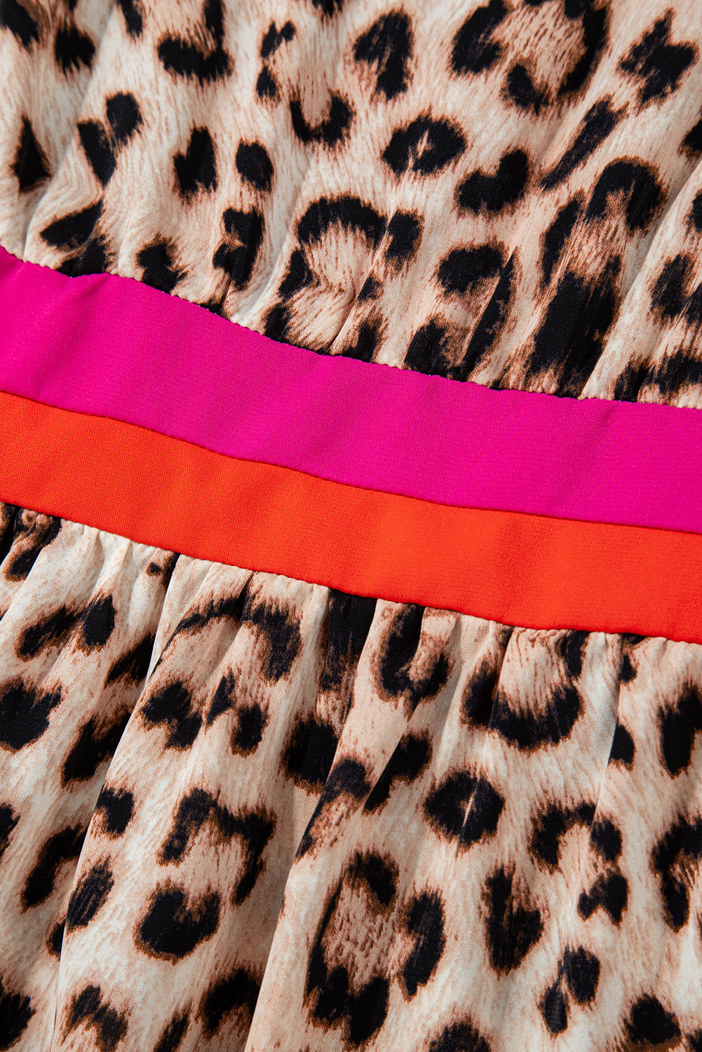 Khaki Cheetah Color Block V Neck Balloon Sleeve Babydoll Blouse