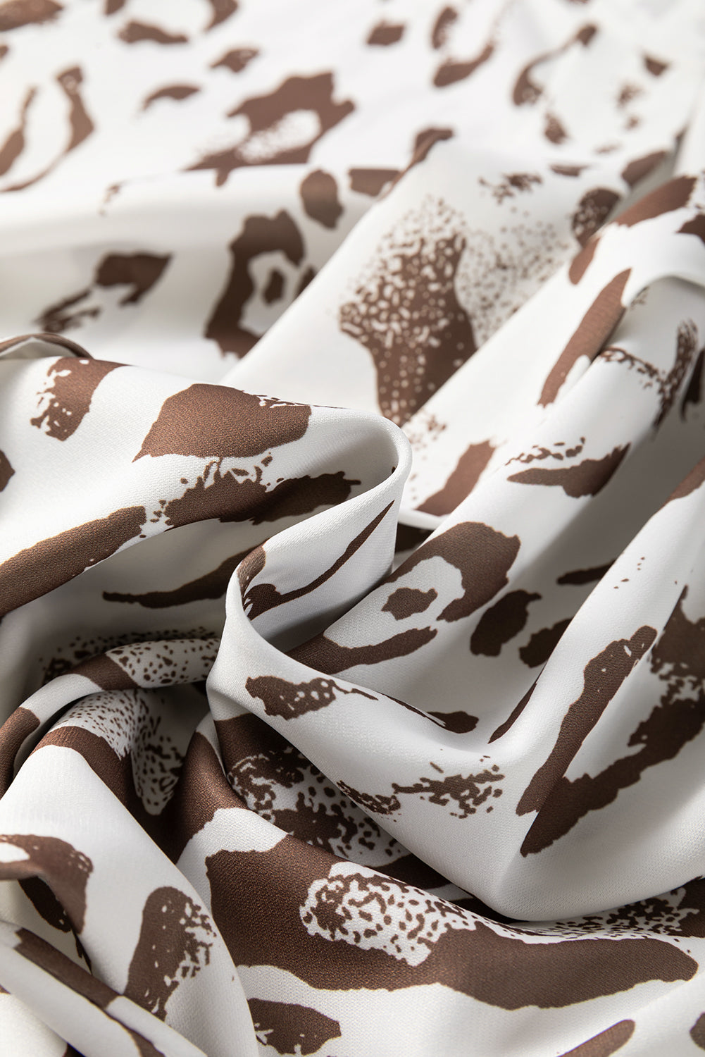 Khaki Leopard Print Split Neck Balloon Sleeve Blouse