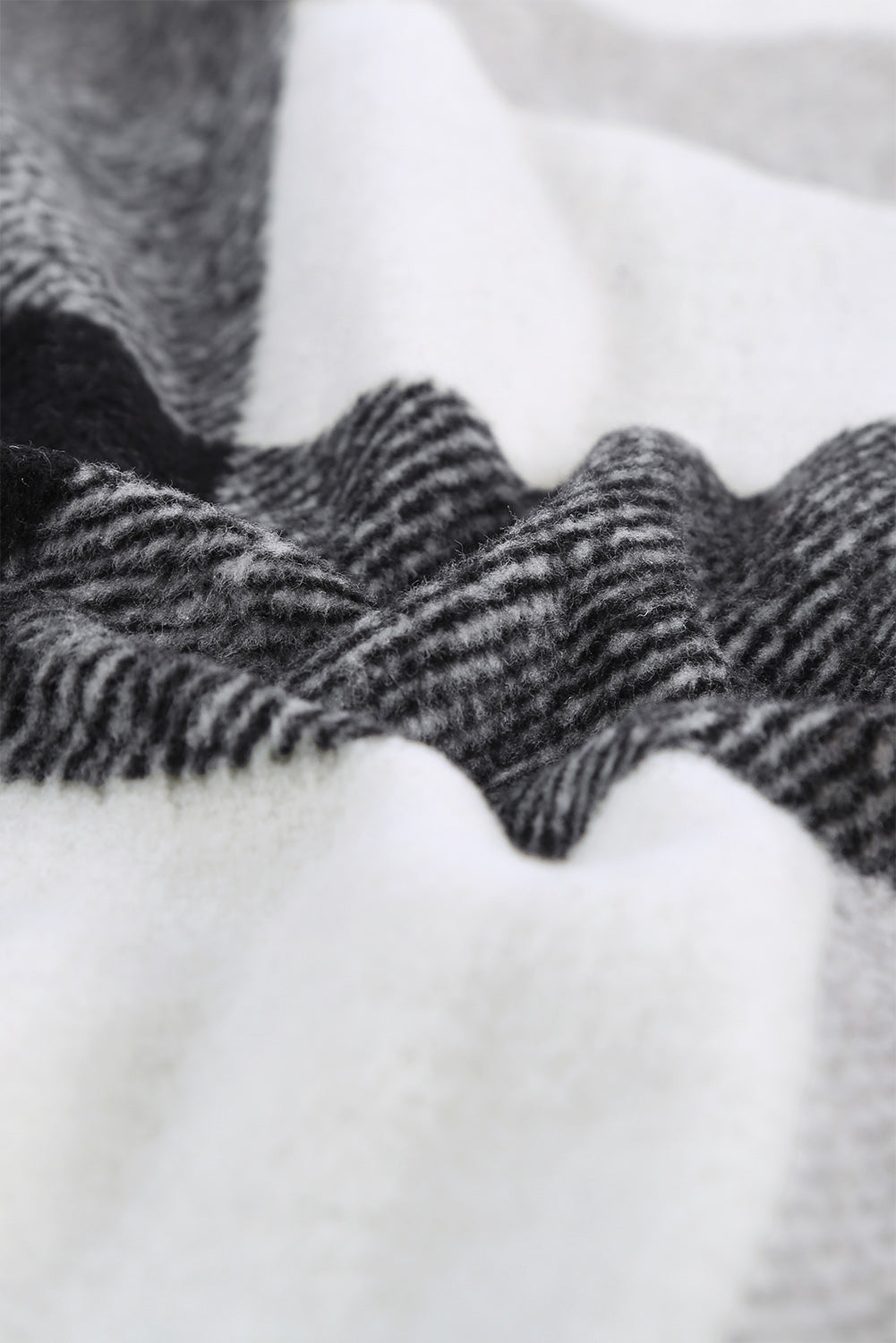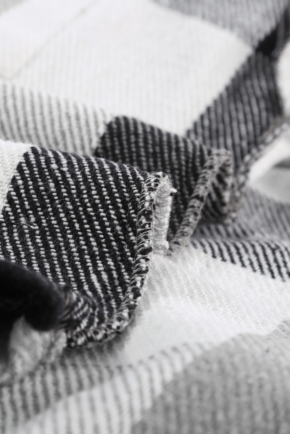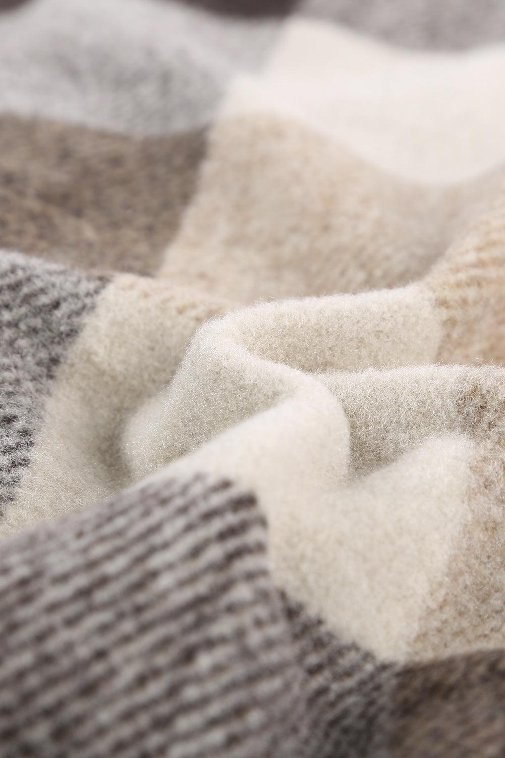 Khaki Plaid Color Block Buttoned Long Sleeve Jacket with Pocket