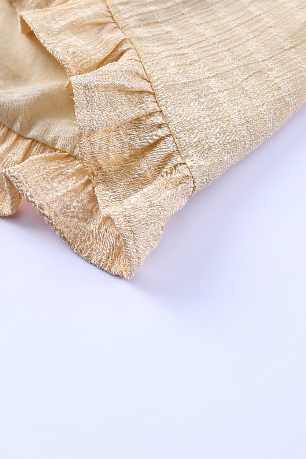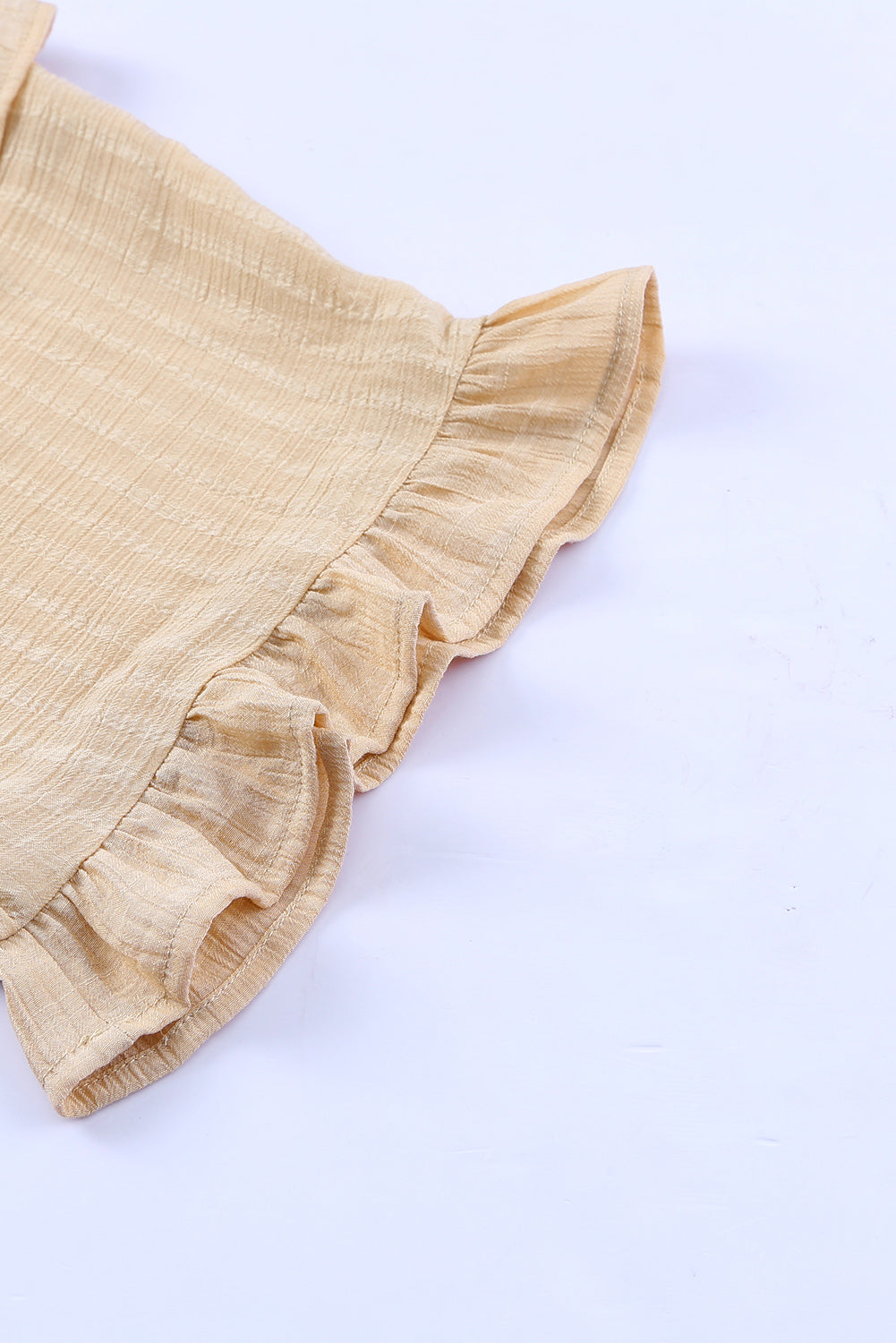 Khaki Ruffled High Waist Short Sleeve V Neck Romper