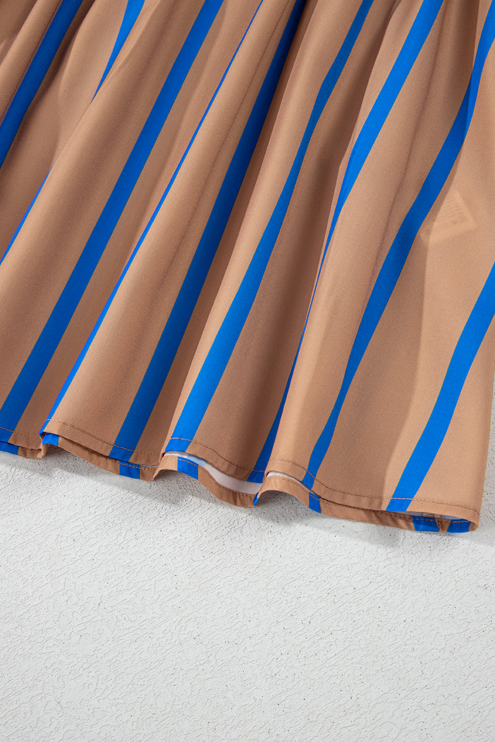 Khaki Stripe Contrast Striped Print 3/4 Sleeve Babydoll Plus Size Dress