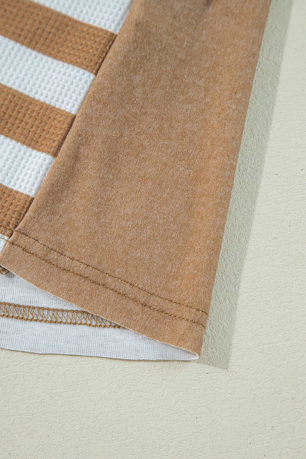 Khaki Striped Checkered Mixed Print Chest Pocket Casual Plus Size Top