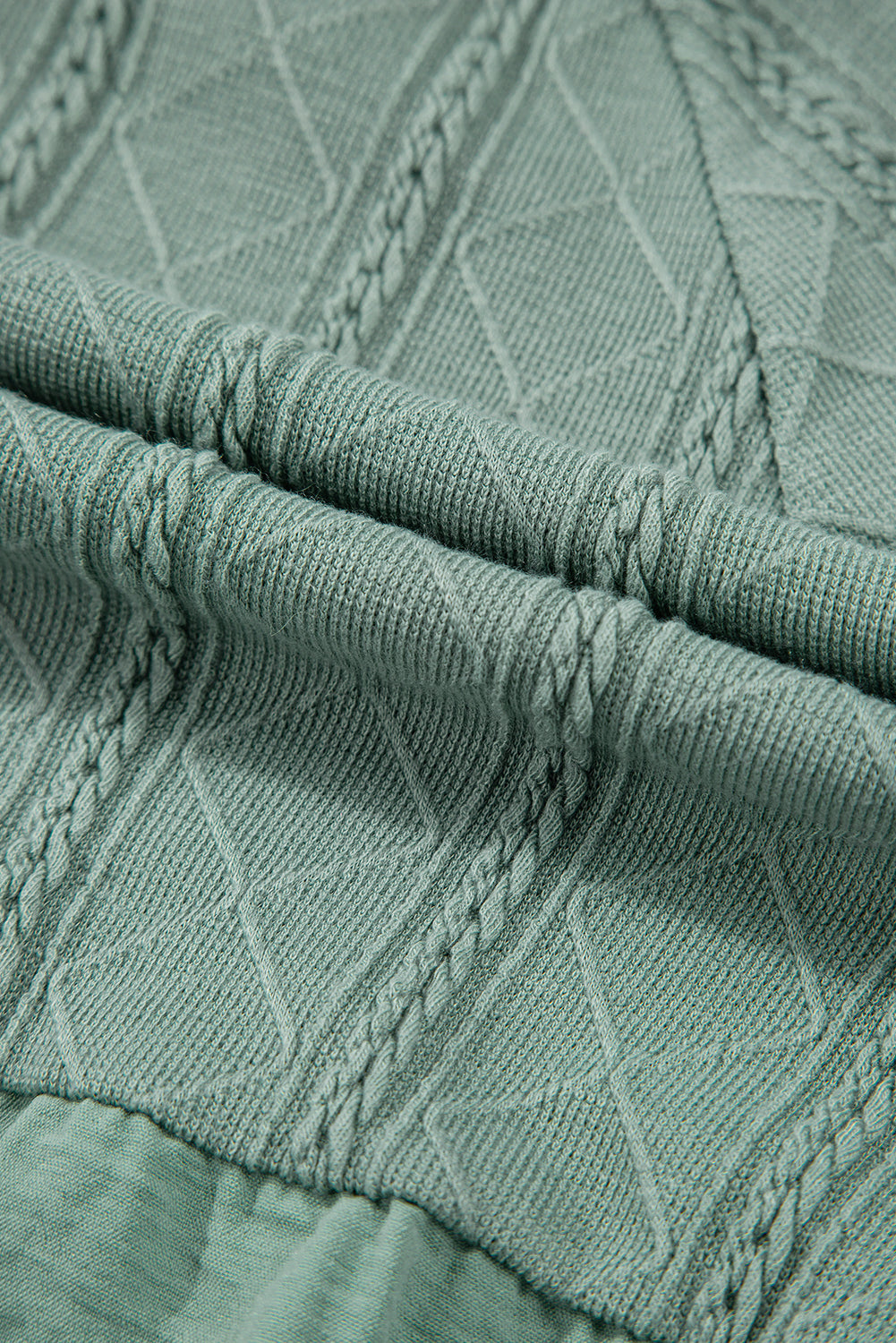 Laurel Green Tie Split Neck Textured Ruffle Patchwork Blouse