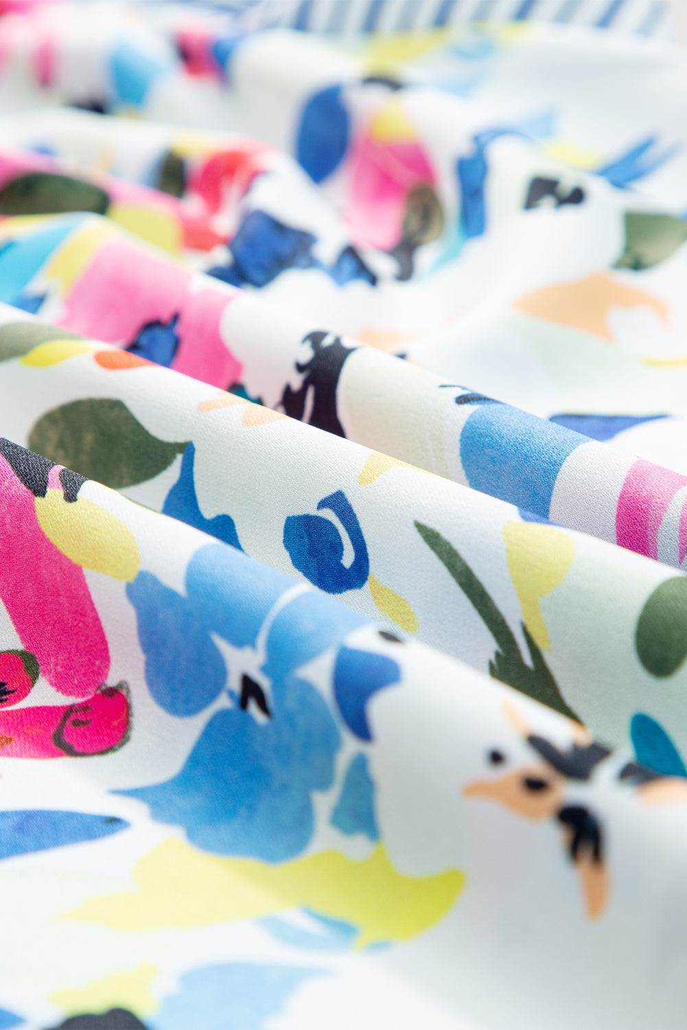 Light Blue Floral Print Striped Ruffled Sleeve Blouse