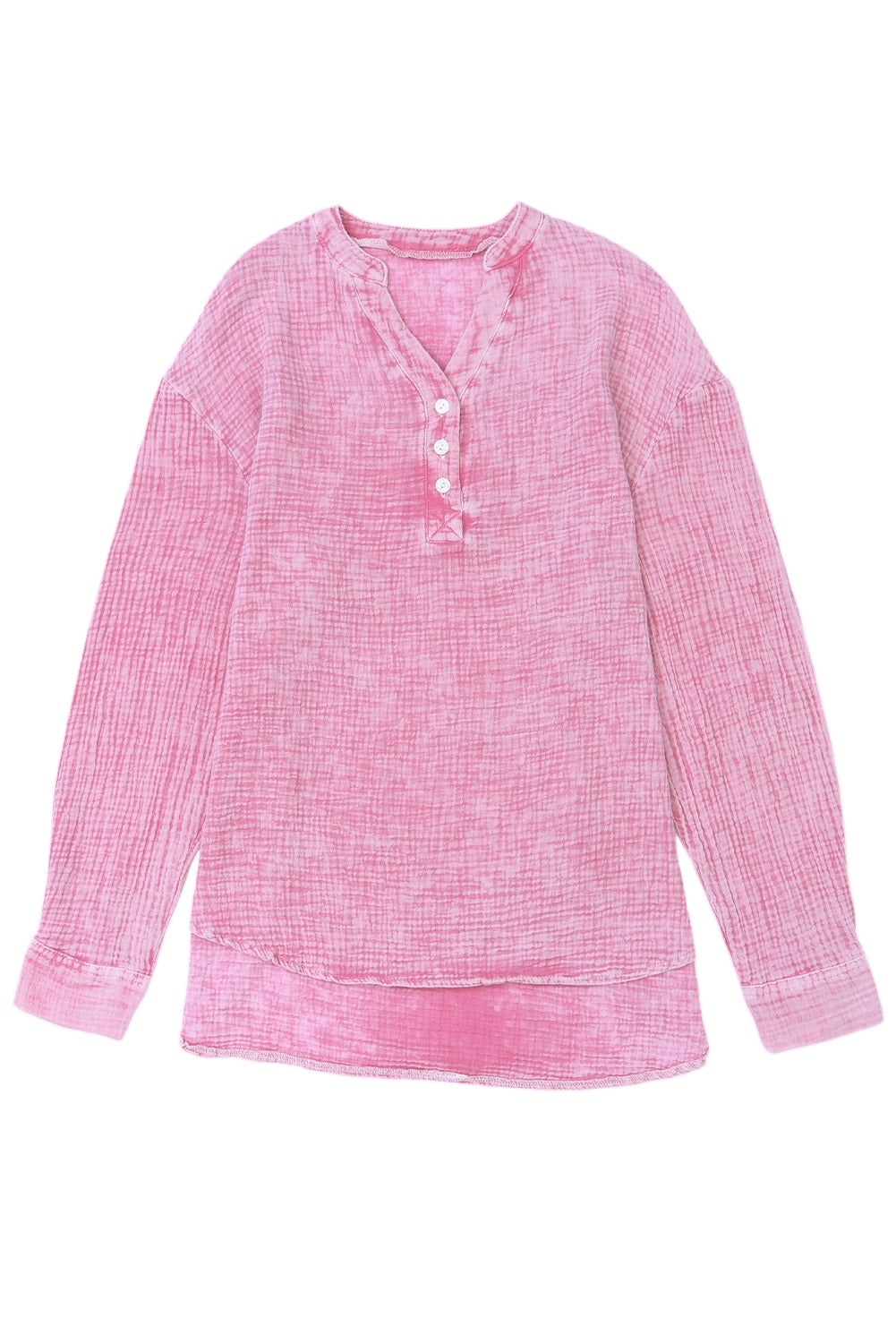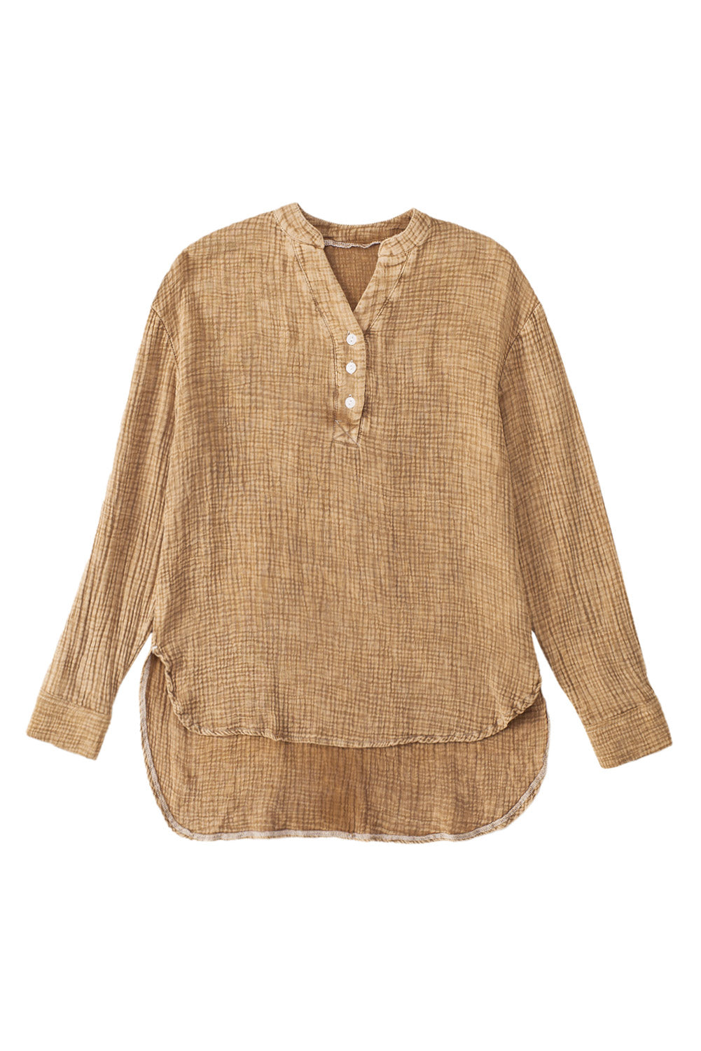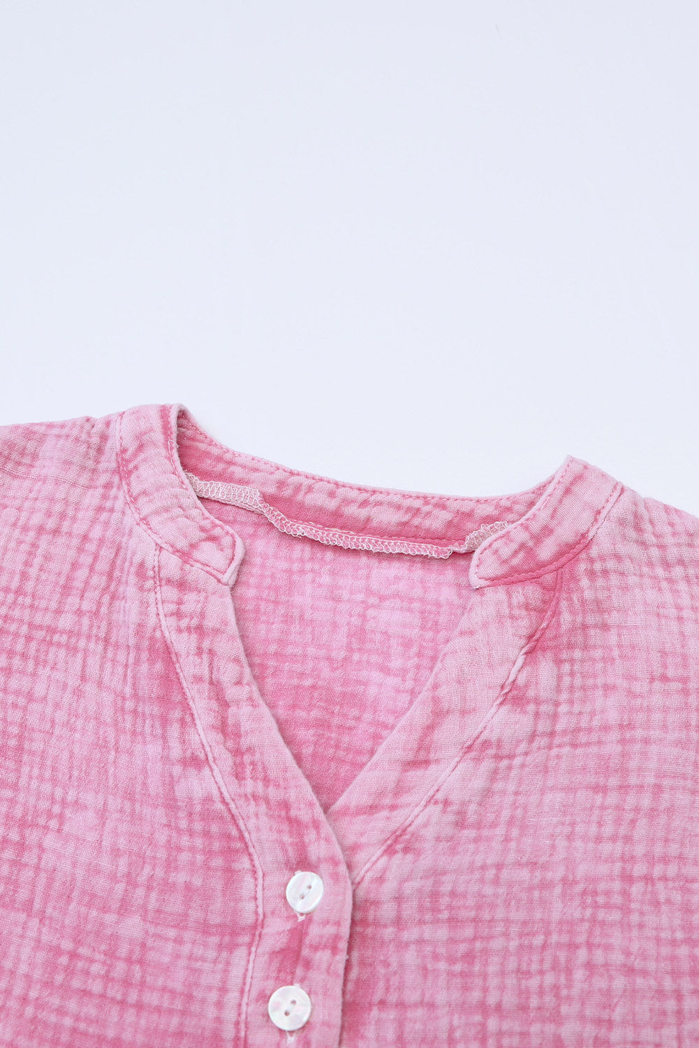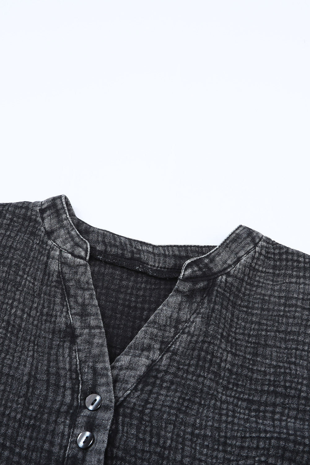 - This Plus Size Split Neck Buttons Crinkled Blouse is stylish and casual