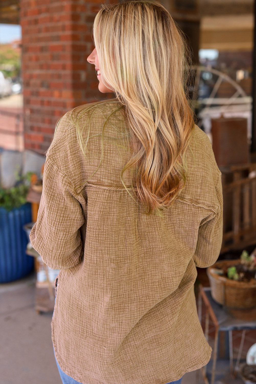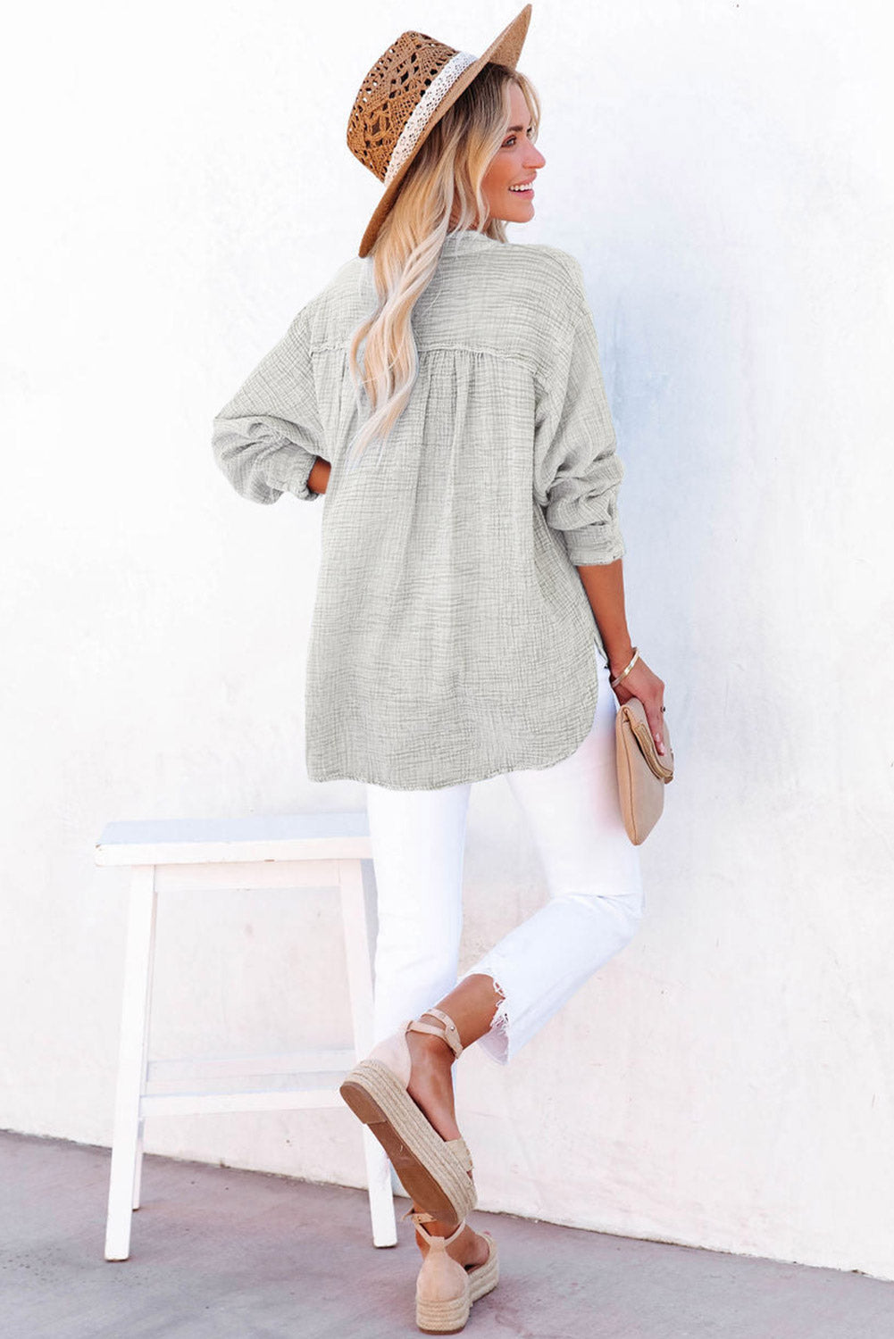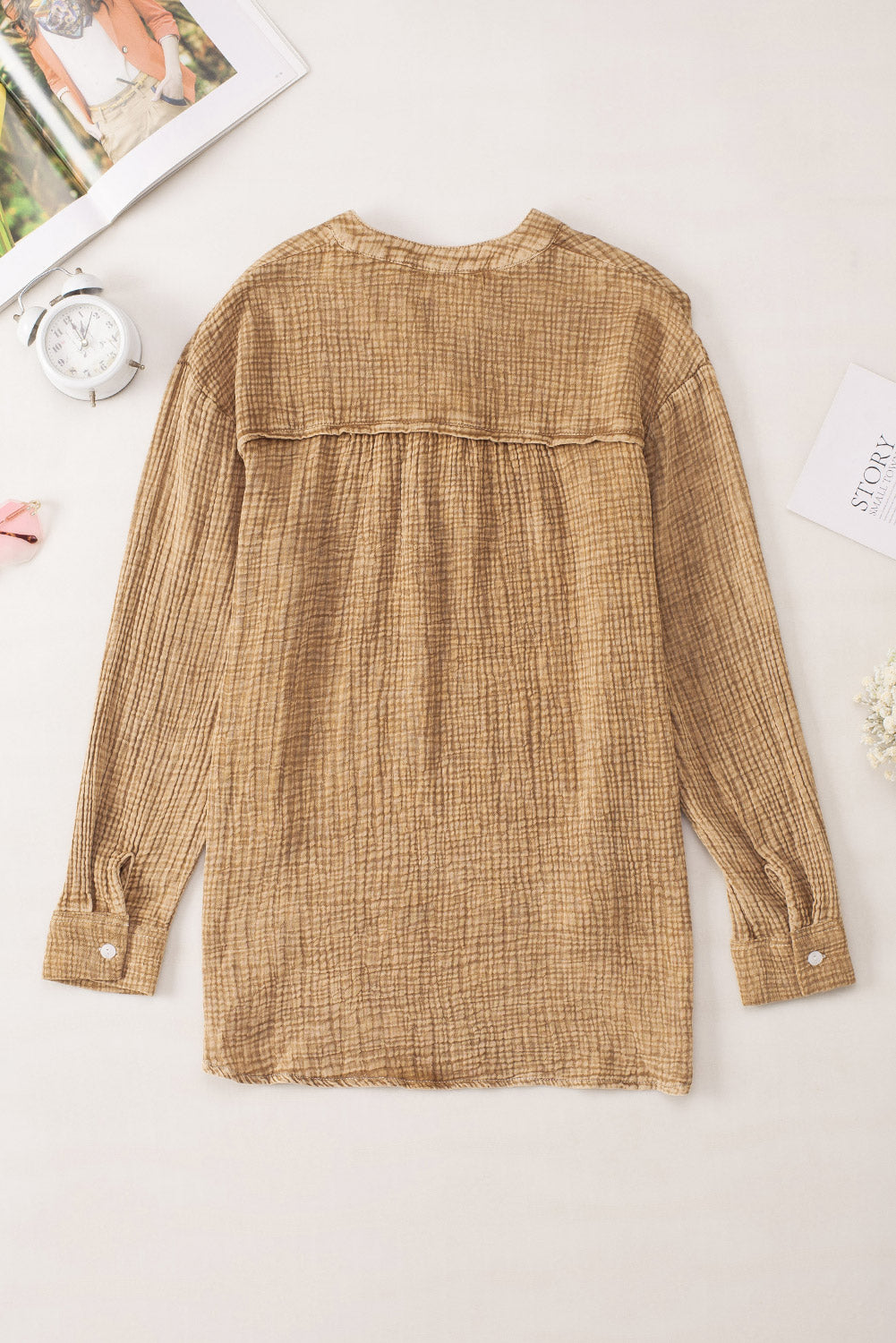 - This blouse is popular for its crinkled texture fabric made
